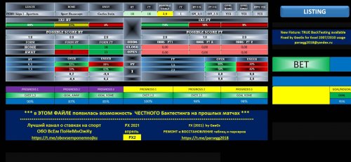 Алгоритмы в файле понятные: к статистическим расчётам по средним значениям прикручено распределение Пуассона. Общее впечатление было несколько смазано от использования здесь, для расчётов ожидаемых голов Команд, дурацкой (по моему мнению) эксельной функции ТЕНДЕНЦИЯ, которая (опять же, по моему личному мнению) абсолютно неуместна при этих расчётах. Но понимая, что всё это совершенно не влияет на общую картину вероятности прогнозируемого события, я уже стараюсь  и не замечать такую мелочь..
