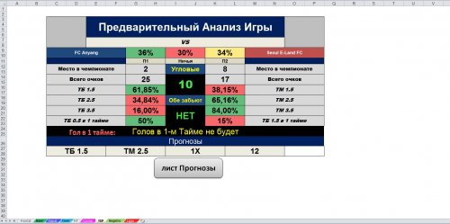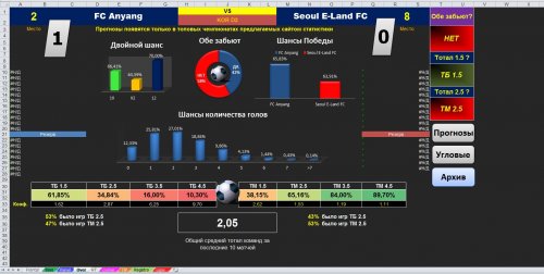 Прогнозирует вероятность событий 1-Х-2, вероятность Тоталов 1,5/2,5/3,5 и возможное количество голов в матче, прогнозы на события в первом тайме, а так же - угловые. в матче.