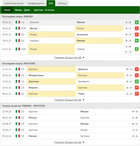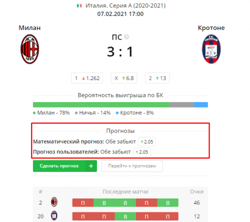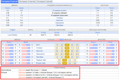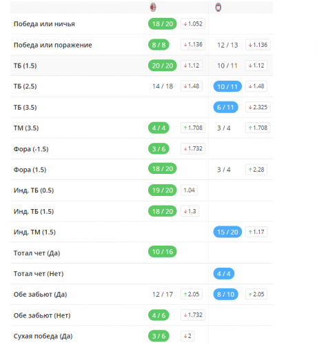 Доброе время суток, товарищи! Решил поделиться своими наработками, как я анализирую матч перед ставкой. Наверняка многие из вас знают те сайты, которые будут приведены в посте, но я буду обращать внимание именно на то, как провожу анализ лично я. Для примера проанализирую сегодняшний матч Милан - Кротоне (я топлю за Милан, поэтому мне будет в радость делать анализ на этот матч). И так, давайте начнем по порядку (буду максимально краток, чтобы статья не растянулась на несколько часов чтения): 1) flashscore.com Здесь мы смотрим травмы игроков, и смотрим самих игроков, пытаемся понять насколько они важны для данного матча: Так-же мы анализируем последние матчи команд и личные встречи, пытаемся понять форму команд и как может завершиться эта встреча: 2) nb-bet.com Здесь на странице нашего матча мы можем посмотреть какой дается прогноз на матч, основываясь на математическом анализе закономерностей и на что ставят люди: Если мы перейдем во вкладку "Тренды", то сможем увидеть серии команд и какой будет кф, если поставить на серию в текущем матче: 3) 24score.pro Здесь вы можете посмотреть наглядную статистику по тоталу, сколько команды в среднем забивают и в каких таймах. А так же здесь указываются серии команд, если они есть. 4) betting.team Если матч более менее известный, то здесь можно посмотреть на что ставит большинство людей: 5) goaloong.net Здесь можно посмотреть в какое время матча команды чаще всего забивают и пропускают: 6) betinfo.cc Здесь показаны серии команд и расписана закономерность каждой серии с обоснованием: Вот в принципе и все. Я знаю, что есть еще много других ресурсов, но я для себя привык пользоваться именно этими. Если я забыл о каком-то важном ресурсе, то пишите о них в комментариях, с радостью почитаю.