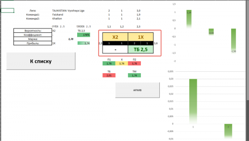 1. Всем привет! Позаимствовал полупарсер здесь у ребят и вставил свою формулу. Данные берет из очек (больше результат показало) Много здесь толковых ребят, так что вместе может ее доработаем. Отбор прост на исход или/и тотал, думаю сами разберетесь. Минусы присутствуют к сожалению, но может с каким доп анализом увеличим проходимость.... Админам большой респект за форум! GuxyyZ.xlsb