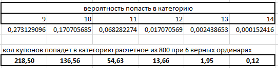 Если учитывать всегда что ты 6 ординаров угадаеш то там уже и вариантов то не особо много остается до джек пота 6561 вариант и если ты будеш по 800купонов ставить то шанс на джек пот даже рандомной кучей купонов будет около 12% тут больше прогноз нужен для этих 6 ординаров чем система купонов