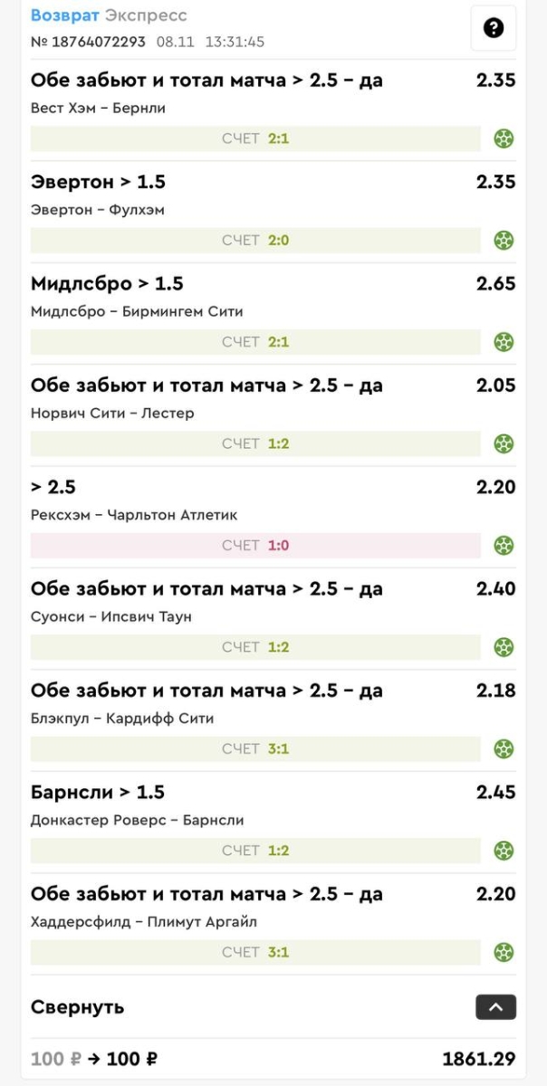 Постоянный Sweet Mask 706 Опубликовано 7 ноября, 2025 Постоянный Поделиться Опубликовано 7 ноября, 2025 2 часа назад, Евгений Виноградов сказал: Привет есть изменения какие нибудь? Вот один из экспрессов который зашел)) А теперь до матча скинь прогнозы по твоему отбору и заценим чудо проходимость))) Цитата Ссылка на комментарий https://brcbet.com/topic/107593-prostaya-programmka-na-futbol-total-i-ishod/#findComment-515731 Поделиться на другие сайты Поделиться