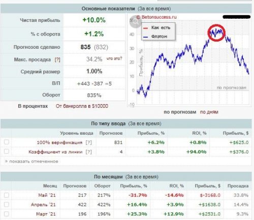 Может кто подскажет. Слежу за таблицой пол года, за первые 5 месяцев нашел закономерности, которые давали положительный рои 20-30%, порядка 400 матчей. Но вот за май все эти закономерности дают уверенный минус, в -20 рои.