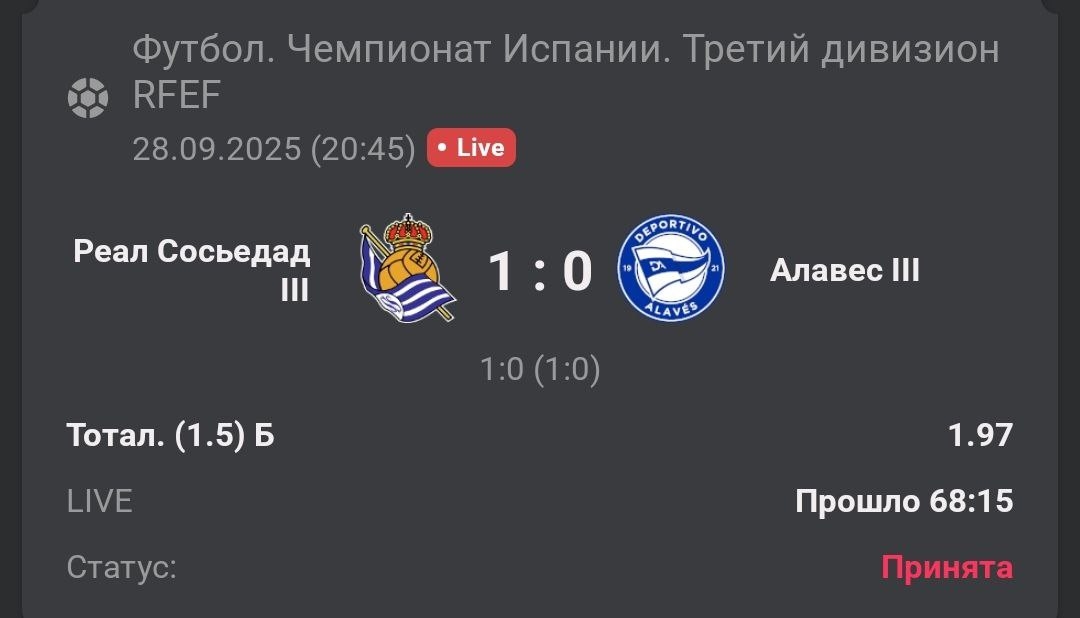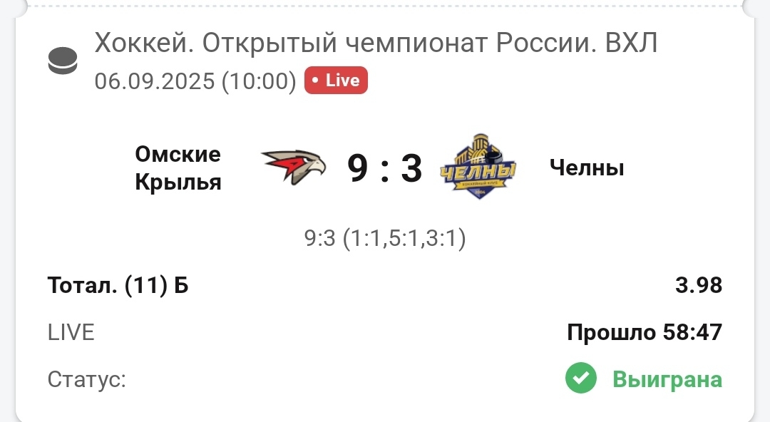 Постоянный JokerbetsAi 151 Опубликовано 6 сентября, 2025 Автор Постоянный Поделиться Опубликовано 6 сентября, 2025 2 часа назад, JokerbetsAi сказал: Тотал больше 3 / 3.5 3-0 возврат Цитата Ссылка на комментарий https://brcbet.com/topic/226336-ograblenie-bukmekera-sezon-3/page/58/#findComment-512162 Поделиться на другие сайты Поделиться