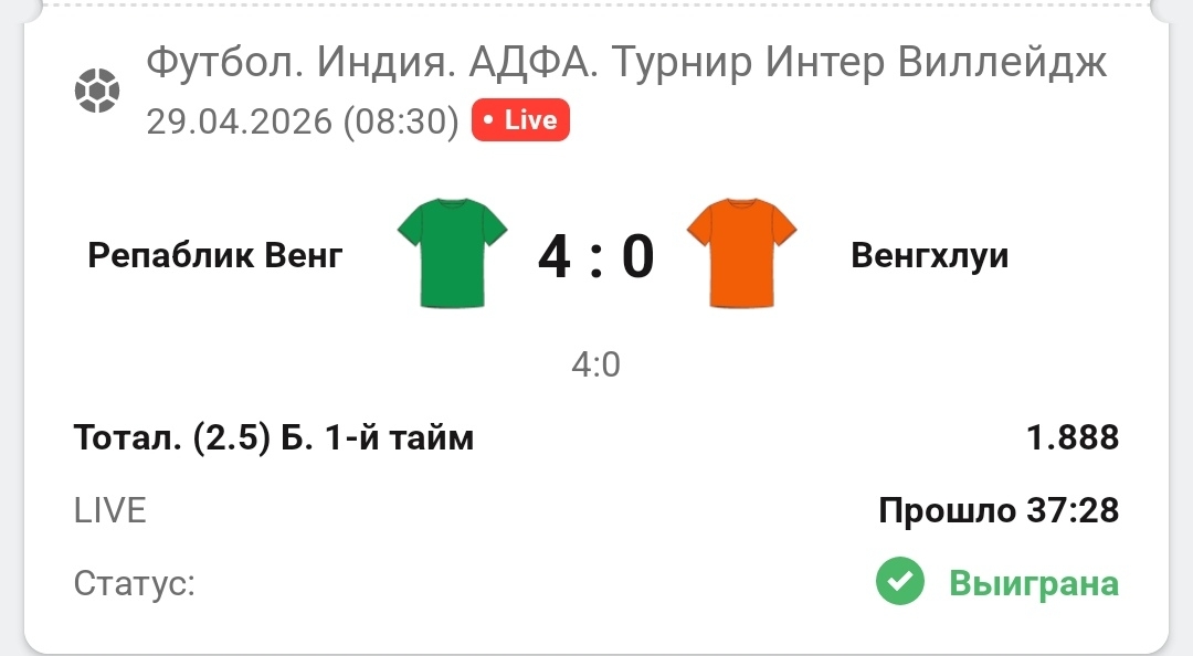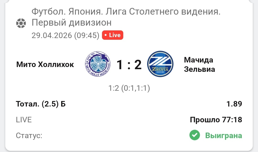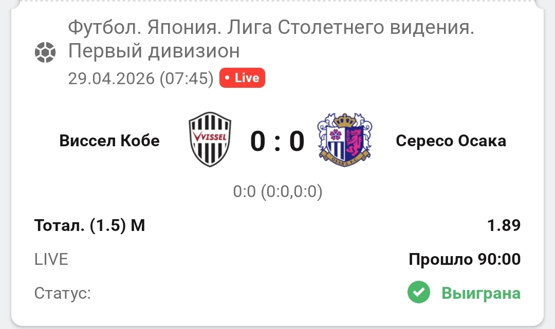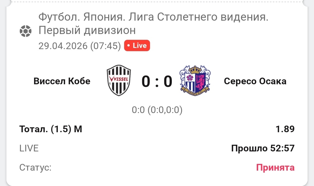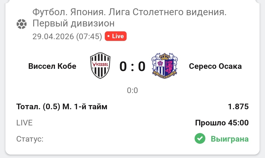 Постоянный JokerbetsAi 151 Опубликовано 6 часов назад Автор Постоянный Поделиться Опубликовано 6 часов назад 15 минут назад, JokerbetsAi сказал: Тотал больше 2.5 / 3 тайм 1 Вообще легко с победой Цитата Ссылка на комментарий https://brcbet.com/topic/226336-ograblenie-bukmekera-sezon-3/page/62/#findComment-525358 Поделиться на другие сайты Поделиться