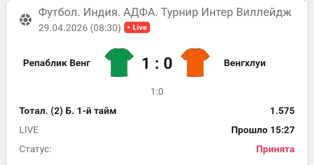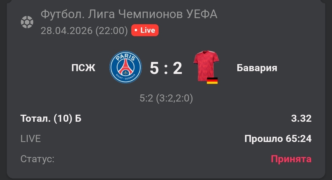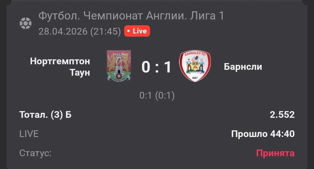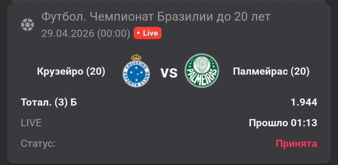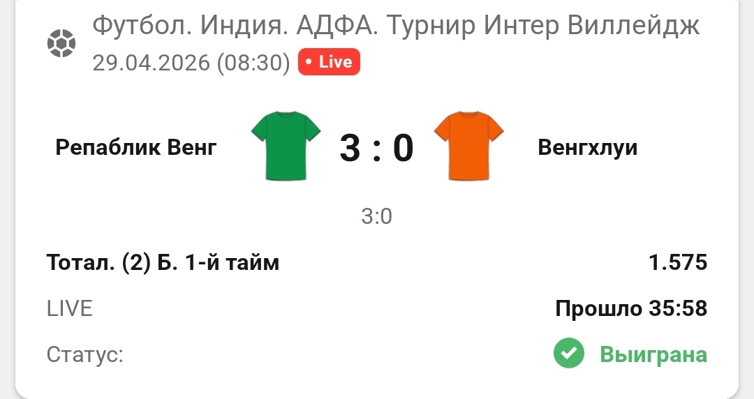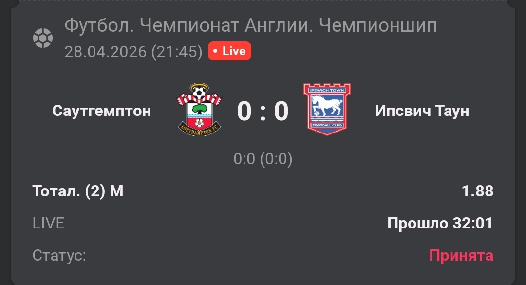 Постоянный JokerbetsAi 151 Опубликовано 6 часов назад Автор Постоянный Поделиться Опубликовано 6 часов назад 15 минут назад, JokerbetsAi сказал: Тотал больше 2.5 / 3 тайм 1 Вообще легко с победой Цитата Ссылка на комментарий https://brcbet.com/topic/226336-ograblenie-bukmekera-sezon-3/page/62/#findComment-525358 Поделиться на другие сайты Поделиться