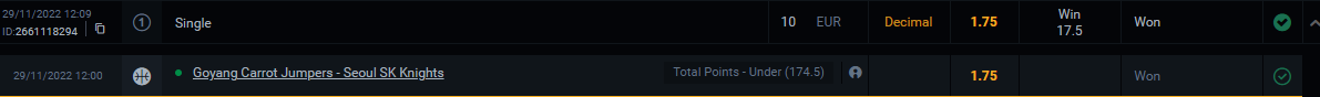 Постоянный JokerbetsAi 151 Опубликовано 29 ноября, 2022 Автор Постоянный Поделиться Опубликовано 29 ноября, 2022 Basketball. Korea (South). KBL. Goyang Carrot Jumpers - Seoul SK Knights. ТМ от 175 Цитата Ссылка на комментарий https://brcbet.com/topic/226336-ograblenie-bukmekera-sezon-3/page/9/#findComment-265367 Поделиться на другие сайты Поделиться