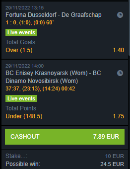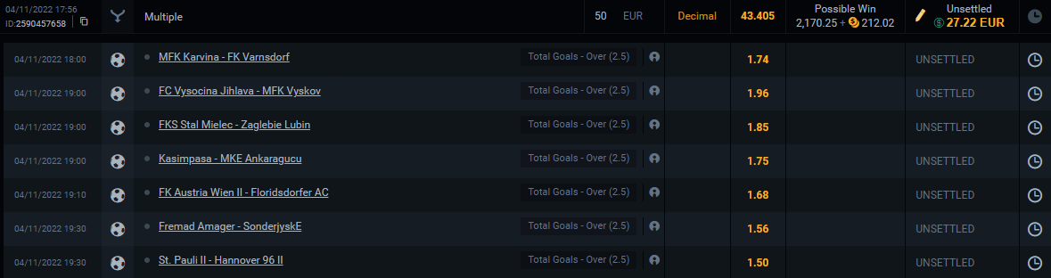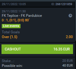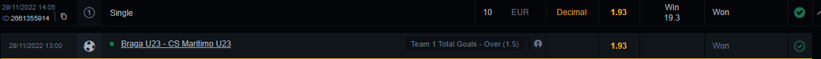 Постоянный JokerbetsAi 151 Опубликовано 29 ноября, 2022 Автор Постоянный Поделиться Опубликовано 29 ноября, 2022 (изменено) LIVE ТБ 0.5/1 первая половина гол упал) жду второй Изменено 29 ноября, 2022 пользователем batya777 Цитата Ссылка на комментарий https://brcbet.com/topic/226336-ograblenie-bukmekera-sezon-3/page/9/#findComment-265400 Поделиться на другие сайты Поделиться