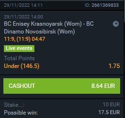 Постоянный JokerbetsAi 151 Опубликовано 29 ноября, 2022 Автор Постоянный Поделиться Опубликовано 29 ноября, 2022 Basketball. Russia. Premier League - Women. BC Enisey Krasnoyarsk (Wom) - BC Dinamo Novosibirsk (Wom). MARKETTotal Points: Under (146.5) Играем от 147 ТМ Цитата Ссылка на комментарий https://brcbet.com/topic/226336-ograblenie-bukmekera-sezon-3/page/9/#findComment-265424 Поделиться на другие сайты Поделиться