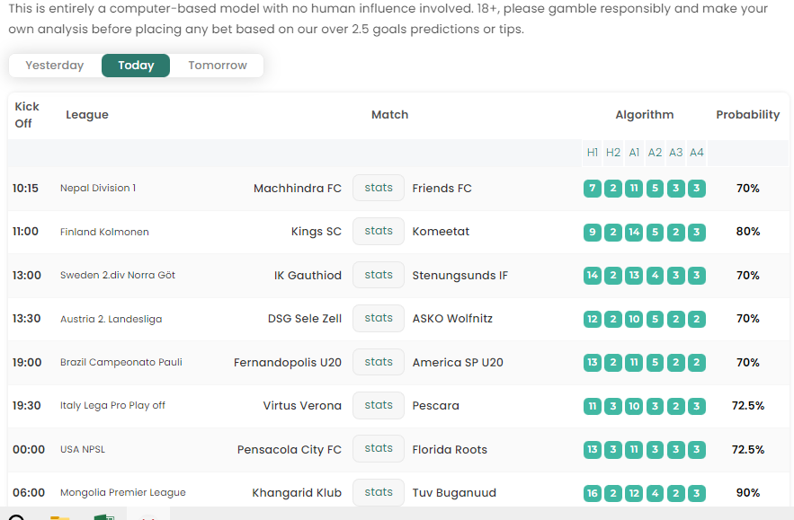 Yurec 58 Опубликовано 19 мая, 2023 Автор Поделиться Опубликовано 19 мая, 2023 17 часов назад, Yurec сказал: Добрый день. Прогнозы на сегодня с сайтов over25tips.com и footballprediction365.com в таблице. Завтра скину таблицу с результатами. Сайт 2,5 Over.xlsb 25 \u043a\u0411 · 6 загрузок Доброе утро. Результаты "качели' Сайт 2,5 Over.xlsb 15 часов назад, Yurec сказал: https://www.over25tips.com/soccer-stats/expected-goals/ Вот ещё с сайта калькулятор А вот к калькулятору нужно присмотреться архив25tips.xlsb Цитата Ссылка на комментарий https://brcbet.com/topic/258857-sayt-over25tipscom/#findComment-339103 Поделиться на другие сайты Поделиться