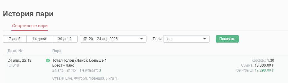 Постоянный Turbo 415 Опубликовано 15 часов назад Автор Постоянный Поделиться Опубликовано 15 часов назад Отчет по матчу Брест - ланс , итоговый 3-3 , первый гол от Ланса на 60 мин , ставка прошла : Цитата Ссылка на комментарий https://brcbet.com/topic/268042-tochnye-prognozy-na-futbol/page/82/#findComment-524948 Поделиться на другие сайты Поделиться