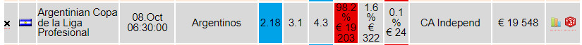 Кирилл Клейменов 400 Опубликовано 7 октября, 2023 Поделиться Опубликовано 7 октября, 2023 (изменено) 2 часа назад, Ommm23 сказал: С какого кармана букмекеры платят выигрыш? Допустим есть матч (реальный) Аргентинский Кубок Ла Лиги среди профессионалов. Argentinos - CA Independ кефы 2.18 - 3.05 - 4.2 Общий объем денежных средств влитых в этот матч игроками составляет € 17 199 на П1 € 16 910 - Х € 283 - П2 € 7 Если выиграет первая команда то сумма выплаты выйдет в размере € 36863,8. Возникает вопрос а как букмекер будет проводить выплату если в общем у него на руках всего € 17 199??? Если вы приводите данные с этого сайта... то суммы указаны не корректно..: Поясню... Суммы берутся с биржи Betfair - поскольку она ЕДИНСТВЕННАЯ - кто показывает суммы на плечах. НО - плечи плюсуются суммами ЗА и Против... Поэтому ОБЩАЯ сумма не соответствует сумме к примеру на П1... Изменено 7 октября, 2023 пользователем Кирилл Клейменов 1 Цитата Ссылка на комментарий https://brcbet.com/topic/355462-kto-komu-platit/#findComment-392999 Поделиться на другие сайты Поделиться