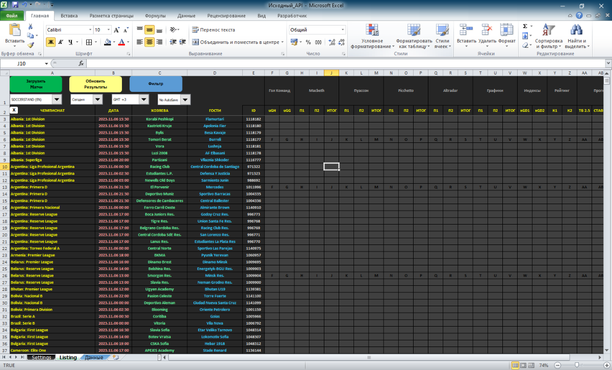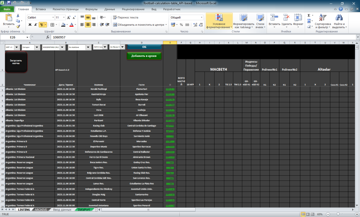 Доброго времени суток товарищи кодеры. Ищу автора таблицы "football-calculation-table_API-based" скрин 1. Извиняюсь сразу за использование чужого кода, но думаю тут все так делают. Дело в том что, таблица не работает без страницы DataPort, так как она качается с непонятного fillData "/excel/FootballCalc?dayOffset=" & dayzone & "&timeZone=" & timezone, с сайта с каким-то api. В именно такую же страницу с таким же названием. Но копирайтить я не захотел ее из-за го*но-оформления и непонятной читабельности. Я занялся реализацией другой таблицы (скрин 2), более понятной, читабельной, оформленной, но использовал ваш api, ибо он скорострельный )). И возникла у меня проблемка с получением id матча. Код весь рабочий, проблем нет, список создается, ссылка грузится. Но мне что бы сделать формулы, необходима статистика, которую без всем понятной id-матча (a81y96jGt) не загрузить с soccerstand'a. Не мог бы ты в своем коде изменить подобные этому id (118364) на понятные soccerstand'у id-матча такого рода (a81y96jGt). Дело в том, что эти id помогают грузить и домашние, гостевые, очные, турнирку и прочие матчи + кеффы. И это как бы удобнее. Я сам не кодер, но читать я его умею, возможно что-то где-то подшаманить. Примного благодарен, если отзовешься, или найдется тот кто сможет мне с этим помочь. Код не просите у меня или файлы - они все общедоступны на канале Lux'а.