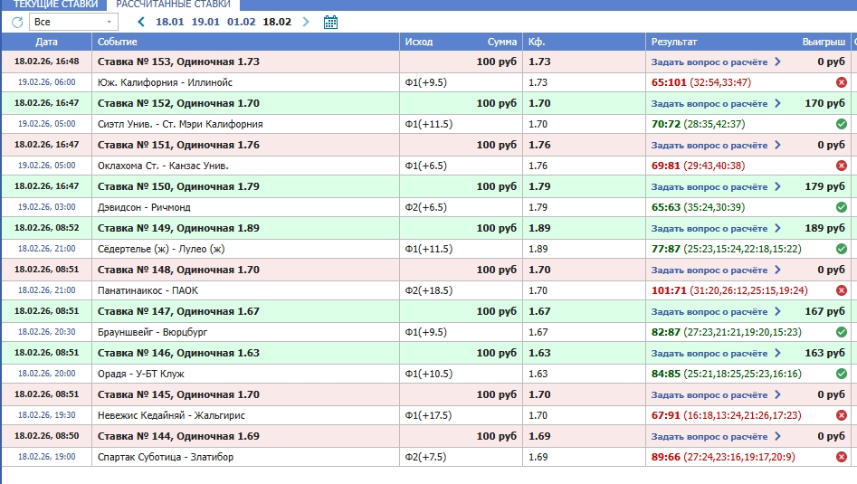 kovan 2 094 Опубликовано 19 февраля Автор Поделиться Опубликовано 19 февраля 3 часа назад, KGB сказал: Интересная штука получается. Если заходит то огромным запасом!!! Если бы не привязался к кэфу, и брал от 2, то вообще шикарно! И обратите внимание-если не заходит, то не заходит конкретно. Я NCAA сразу убираю из списка, там-же студенты, они не предсказуемы. 1 Цитата Ссылка на комментарий https://brcbet.com/topic/381113-basketbol-analizi_fx-mod-kovan/page/51/#findComment-520764 Поделиться на другие сайты Поделиться