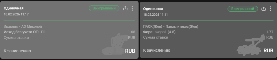 kovan 2 094 Опубликовано 18 февраля Автор Поделиться Опубликовано 18 февраля 23 часа назад, kovan сказал: Провёл сегодня эксперимент. Взял две игры, где по расчётам должна П1, а по кефам бука П2 Поставил с форой на П1 и обе зашли на ура Надо присмотреться к этому, главное что-бы кф на аутсайдера был приличный, у меня форы получились запасом. Совершенно не знаю эти лиги, просто поставил по программе, может мне везёт как новичку (или дурачку) Цитата Ссылка на комментарий https://brcbet.com/topic/381113-basketbol-analizi_fx-mod-kovan/page/51/#findComment-520734 Поделиться на другие сайты Поделиться