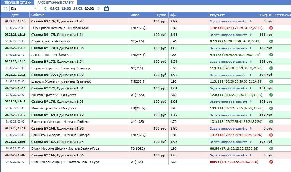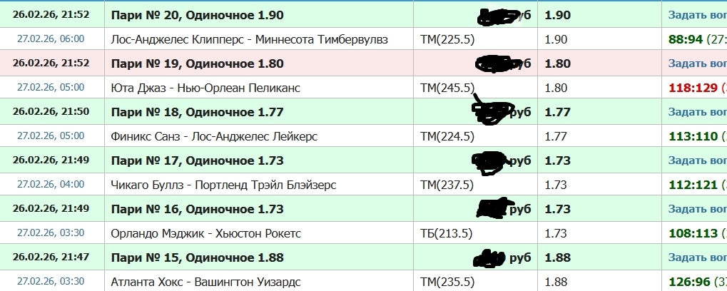 kovan 2 094 Опубликовано 27 февраля Автор Поделиться Опубликовано 27 февраля В 21.02.2026 в 08:39, kovan сказал: Во, уже красиво! Вчера поробовал поставить только на тотал, какие даёт программа. Только одим минус 5 Цитата Ссылка на комментарий https://brcbet.com/topic/381113-basketbol-analizi_fx-mod-kovan/page/52/#findComment-521335 Поделиться на другие сайты Поделиться