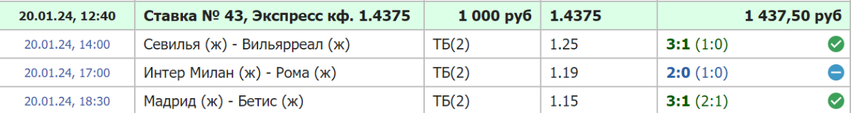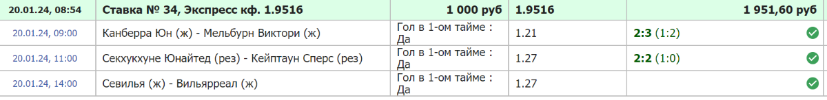 ну и тут плюс, но снова не без отмененного матча, кэф 1.7 + еще в лайве заиграл один матч там кэф вкусный был: