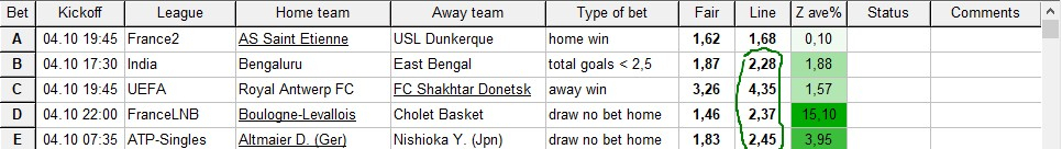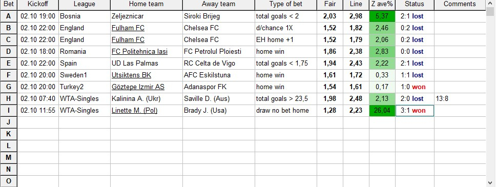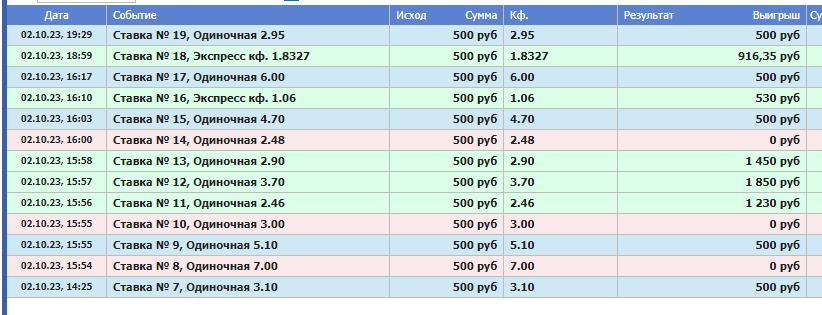 Администраторы Anaz87 245 Опубликовано 3 октября, 2023 Администраторы Поделиться Опубликовано 3 октября, 2023 24 минуты назад, Koyaanisquatsi Hopi сказал: Вчерашние результаты еще не обновились, выкладываю пока таблицу на сегодняшний день. 03.10.23. Кто то пробовал ставить в лайве по этой проге? есть результат? В лайве прогнозы ничем не отличаются от прематча! Цитата Ссылка на комментарий https://brcbet.com/topic/42-odds-wizard/page/65/#findComment-391241 Поделиться на другие сайты Поделиться