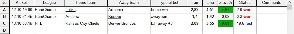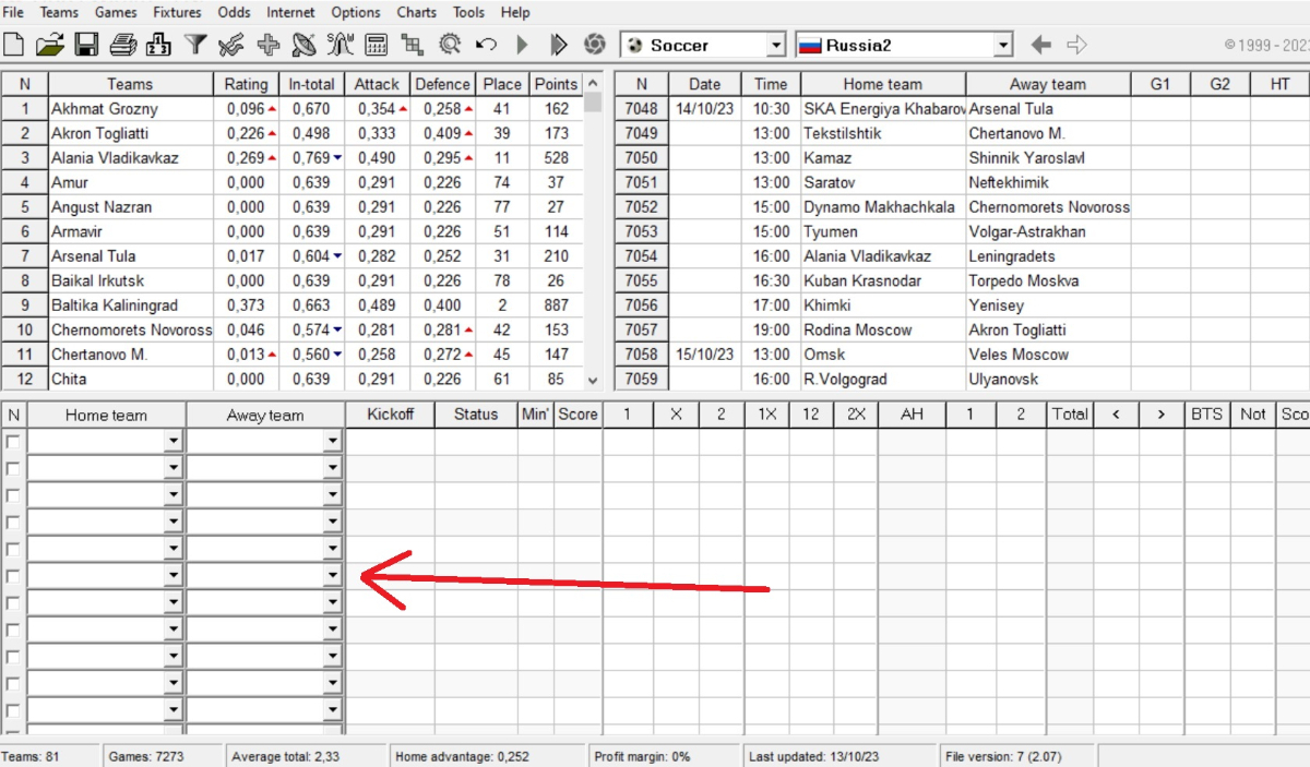 Постоянный Rony 427 Опубликовано 13 октября, 2023 Постоянный Поделиться Опубликовано 13 октября, 2023 40 минут назад, Druskoking777 сказал: На изображении вы можете видеть, что я добавил чемпионат России ФНЛ. Но область, где находится красная стрелка, пуста и не содержит данных. Знаете ли вы, есть ли способ заставить матчи следующего дня автоматически появляться там, где находится красная стрелка? Или мне придется вручную вводить матчи следующего дня? жми на поле где кефы. потом правой кнопкой и в появившемся меню верхнюю строку 1 Цитата Ссылка на комментарий https://brcbet.com/topic/42-odds-wizard/page/69/#findComment-395358 Поделиться на другие сайты Поделиться