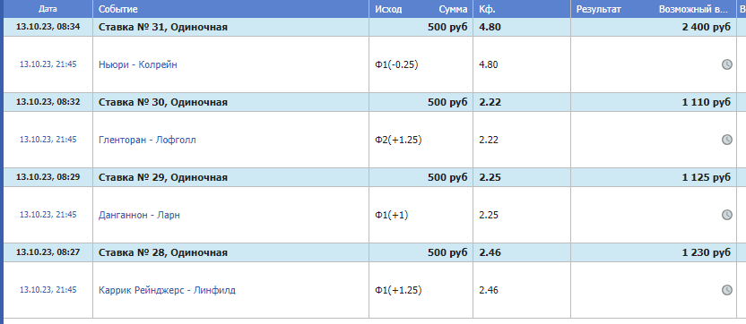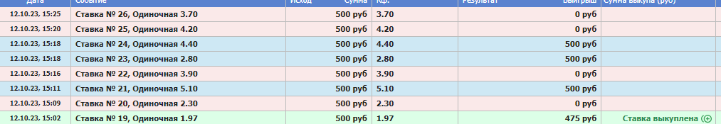 Koyaanisquatsi Hopi 99 Опубликовано 14 октября, 2023 Поделиться Опубликовано 14 октября, 2023 Результаты за 13.10.23 , экспресс 3 матча выигрыш кф 15.77, флеты 2+, Итого: экспрессы 5 матчей -27000, экспрессы 3 матча +12670, флет +3870 рублей. Едем дальше! Цитата Ссылка на комментарий https://brcbet.com/topic/42-odds-wizard/page/69/#findComment-395405 Поделиться на другие сайты Поделиться