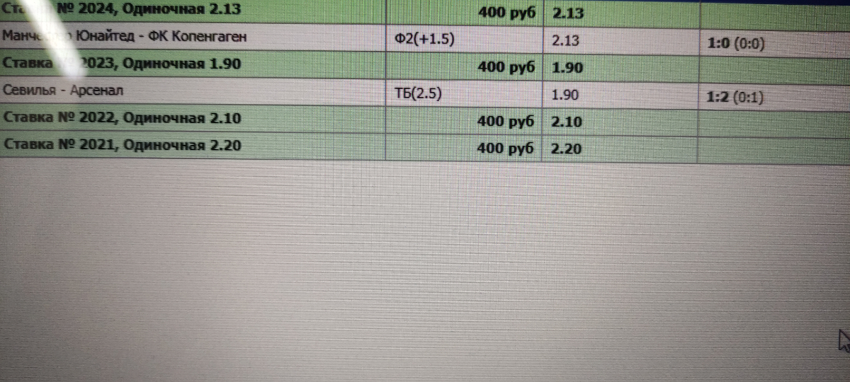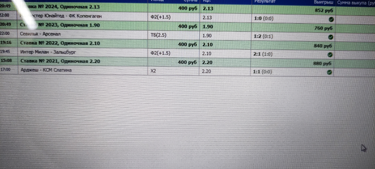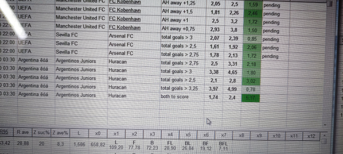 Ни кто не поддержал, скидываю Геннадий как , я отобрал, Манчестер Копенгаген, на вторую команду фора +1.5, второй матч Севилья арсенал заиграл тотал 2.5 больше, нужно уходить по этому раньше скидываю тебе свои мысли,один матч на 900 днях другой нет,если будет тебе интересно, я в лычке опишу тебе почему так взял.