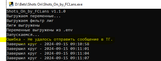 cywkaywka 1 Опубликовано 12 сентября, 2024 Поделиться Опубликовано 12 сентября, 2024 всем доброго дня , прошу прощения за свой вопрос , правильно ли я всё понял и настроил ? просто что то сигналов нет 1. скачал архив с последней версией 1.1.0 2 создал бота по видео выше 3 с помощью блокнота ввел данные бота в файлик настроек (поставил 1 для проверки бота в телеге) 4 запустил Shots_On_by_FCLans.ехе 5 запустилось окно,в телегу пришло сообщение в бот что программа запущена 6 пошли наматывания кругов Цитата Ссылка на комментарий https://brcbet.com/topic/429193-nowgoal-bot-s-vozmozhnostyu-nastroyki-shot_on_by_fclans/page/65/#findComment-488034 Поделиться на другие сайты Поделиться