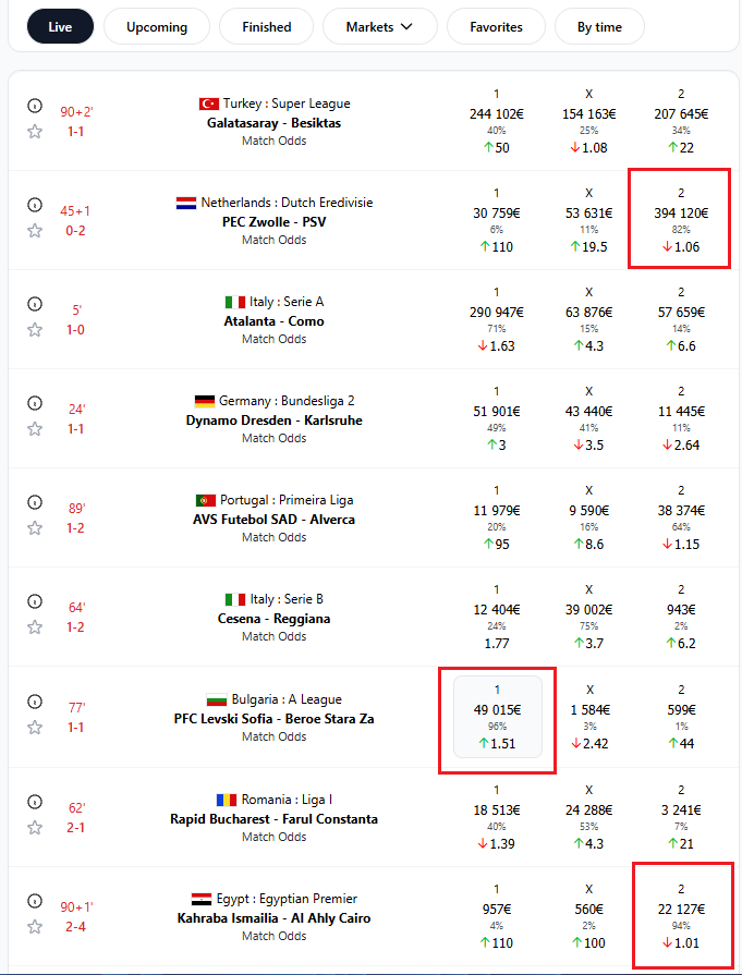 Постоянный Farel 1 166 Опубликовано 5 октября, 2025 Постоянный Поделиться Опубликовано 5 октября, 2025 В 30.09.2025 в 20:13, hostmas сказал: Опять минус. Сыграли 1:1. Про это я и писал, но ТС обиделся)) Да, тема тяжко, но рабочая, как и большинство других. Все упирается в отбор, который не так и просто продумать. Если тулить все подряд, то скорее всего будет минус. Взять к примеру тур за 30 сентября по Чемпионшипу, когда из 8 матчей, 6 ничьих скатали. Думаешь по денежным прогрузам хоть один зашел? Ни одного захода. Скрины ниже, скрин этот за пол часа до начала матчей, примерно тогда сделал. Тема по сути такая же рабочая как и большинство таблиц, которые на данном отрезке, после старта европейского сезона, сейчас совсем слабо просчитывают матчи. Соответственно кто грузит деньги, также пользуются различными таблицами. А конец сентября и октябрь месяц, всегда были сложно просчитываемые. Если бы работал с таблицами, знал бы это. Ну тс возможно тоже увидел это, и решил уйти, пока не пошли сплошные минусы, а может уже просто надоело, особенно когда поддержка тут нулевая, одни упреки, и никто обычно ничего не делает. Я тоже по своей проге, чисто по силам просмотрел английские лиги за вчера, проход был примерно 50/50, хотя обычно на порядок лучше результаты. Поэтому добиться устойчивого плюса, можно только разработав хорошую систему отбора матчей. Других вариантов плюсовать на дистанции попросту нет. А как эту систему сделать, с использованием систем, алгоритмов показывающих вероятности, проверка турнирной таблицы на мотивацию, проверка составов, оценка архивов за прошлые сезоны, или еще какие-то способы, это по сути и решает, будешь зарабатывать или сидеть в минусах ставя по 100 рублей, делая вид что работаешь на ставках. Поэтому только разработка четкой системы отбора, может дать нормальный плюс на дистанции, других вариантов попросту не существует. 1 Цитата Ссылка на комментарий https://brcbet.com/topic/429293-chto-vse-tablitsy-da-tablitsy-sayty-tozhe-mogut-byt-polezny/page/5/#findComment-513484 Поделиться на другие сайты Поделиться
