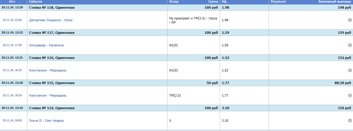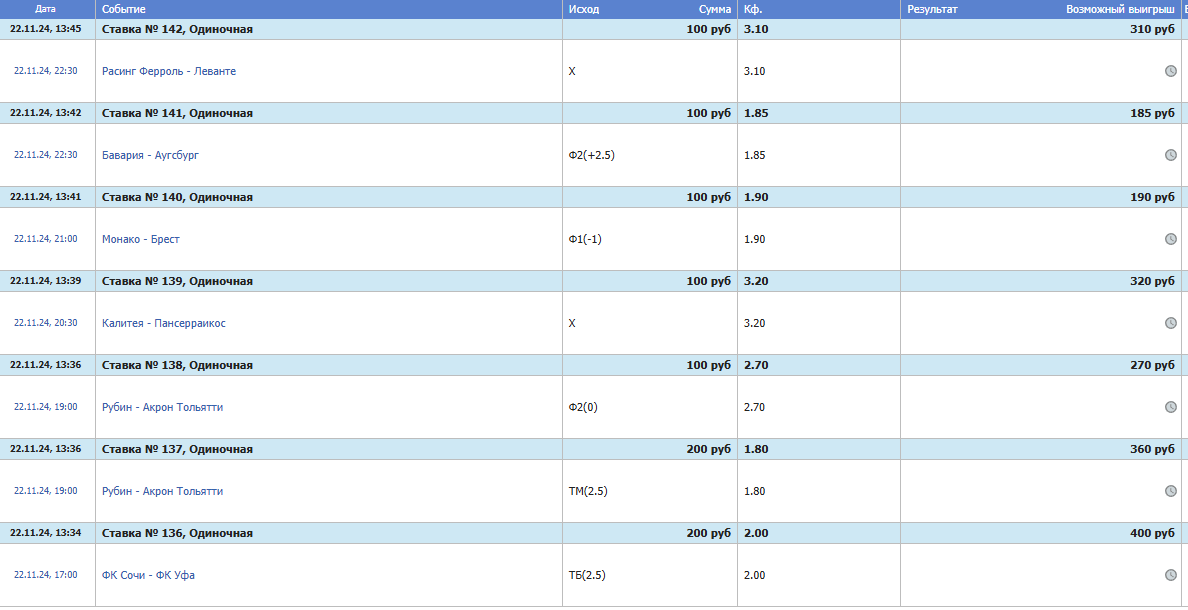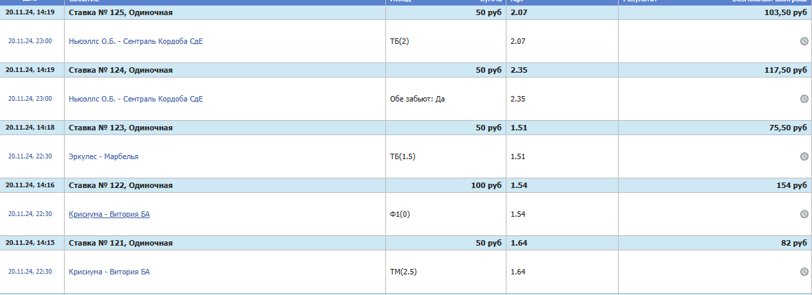 Постоянный hostmas 261 Опубликовано 20 ноября, 2024 Автор Постоянный Поделиться Опубликовано 20 ноября, 2024 (изменено) если сегодня закономерностей не выявлю, значит тест закончу. Мне таблица показалось неудобной. Много ненужного, а например названия чемпионата нет. Но работает быстро, это большой плюс Изменено 20 ноября, 2024 пользователем hostmas Цитата Ссылка на комментарий https://brcbet.com/topic/429374-test-tablitsy-crilt-ot-burn-marlon/#findComment-493328 Поделиться на другие сайты Поделиться