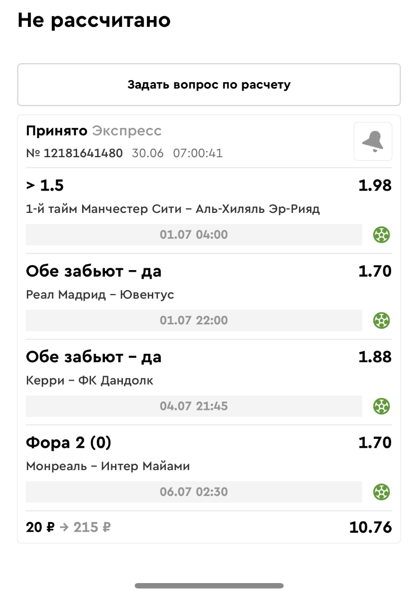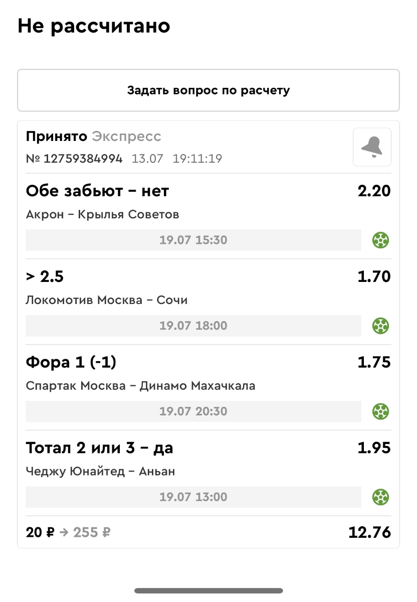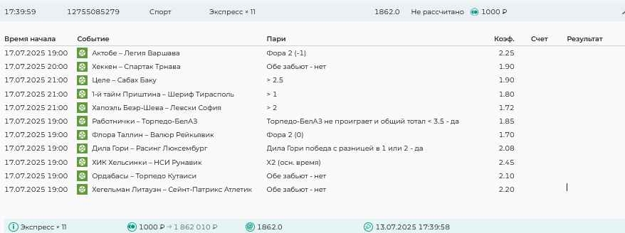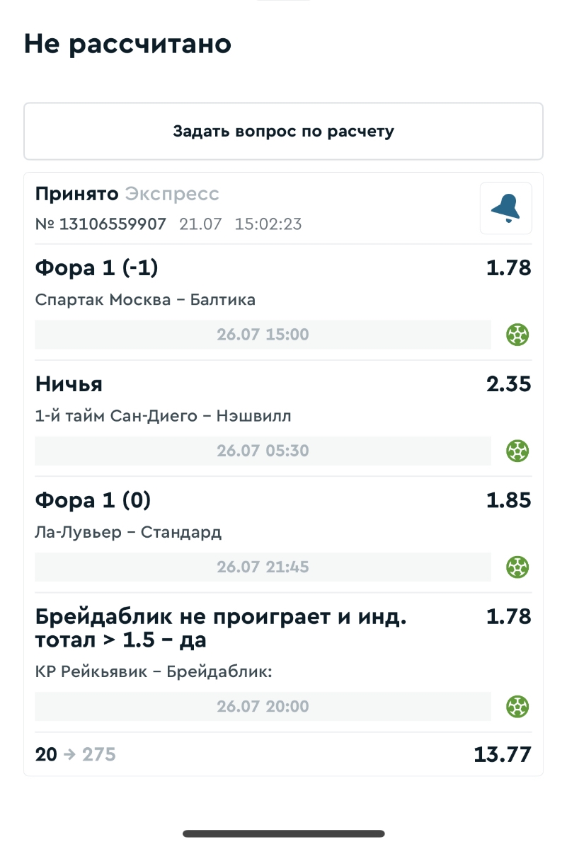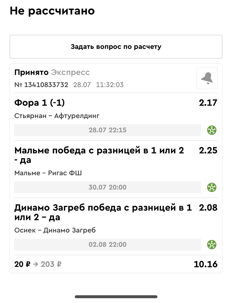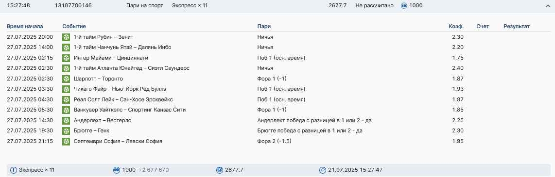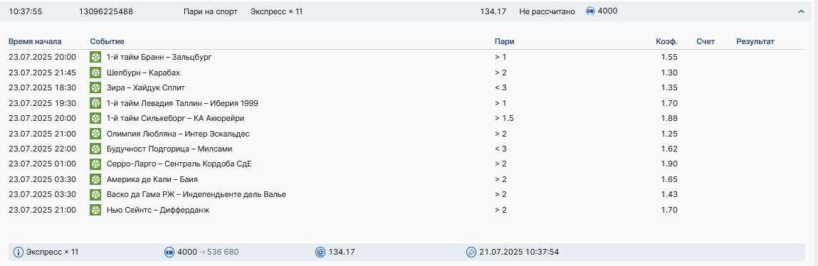 Koyaanisquatsi Hopi 98 Опубликовано 28 июля Автор Поделиться Опубликовано 28 июля На прошлой неделе все экспрессы проиграны, за неделю - 60 000, за год по экспрессам - 778 500 ₽, за июль - 245 000. Экспрессы с проставлением на неделю вперед себя не оправдывают, возвращаемся к системе ежедневных экспрессов. Экспрессы на 28.07.25 а так же недельные экспрессы до 03.08.25. Цитата Ссылка на комментарий https://brcbet.com/topic/429498-master-klass-po-razdevaniyu-bukmekera-tolko-fevral/page/23/#findComment-509428 Поделиться на другие сайты Поделиться
