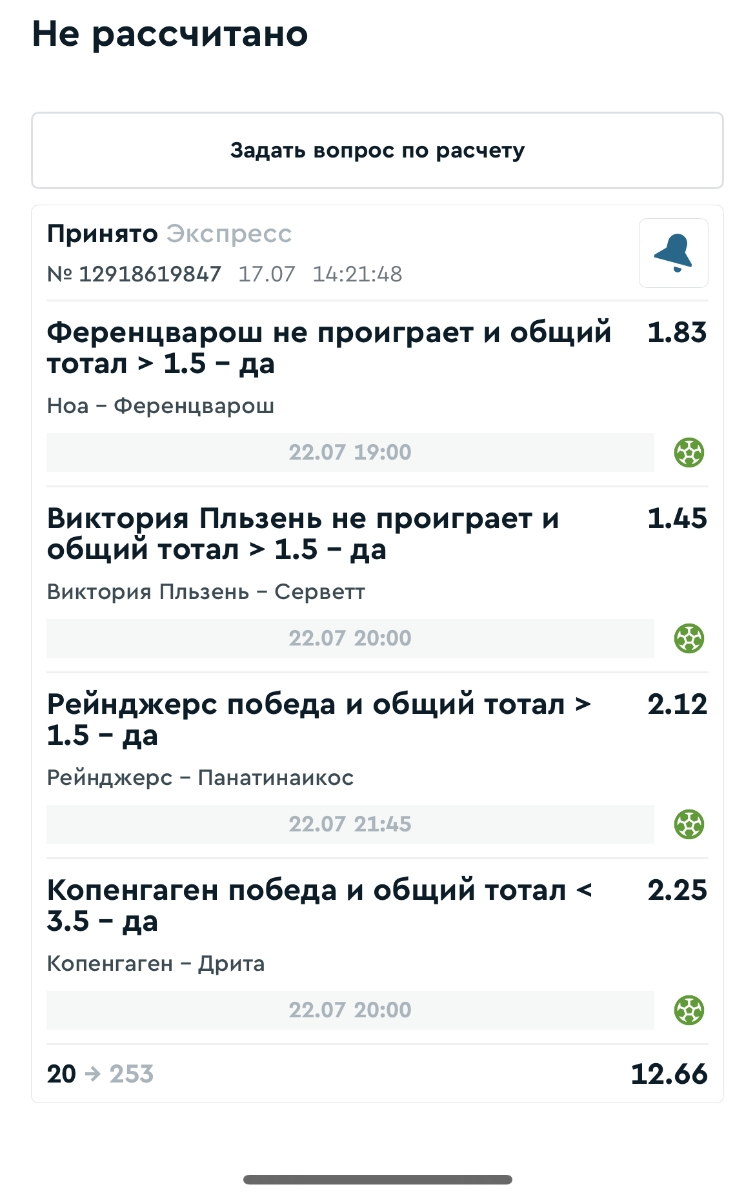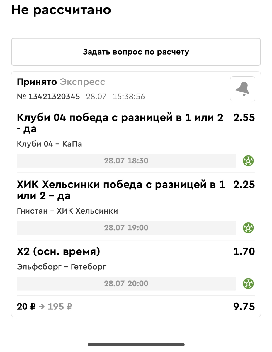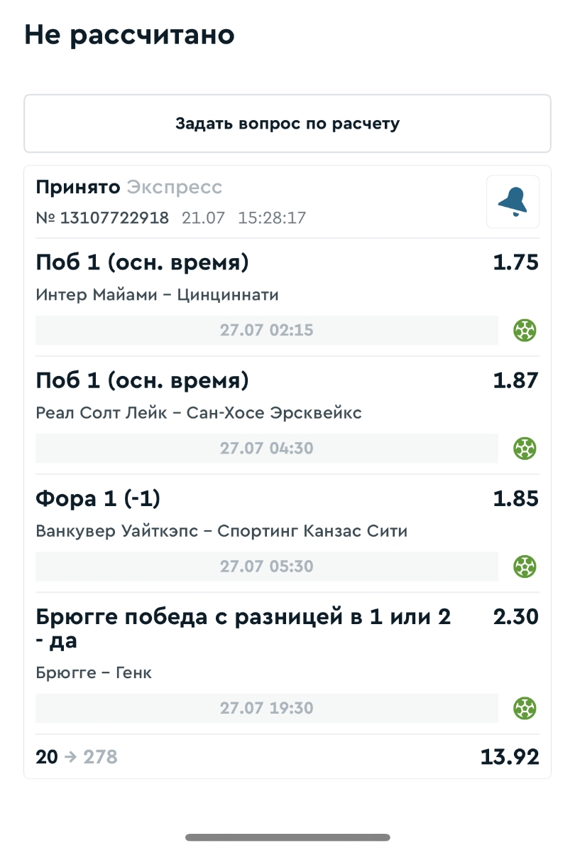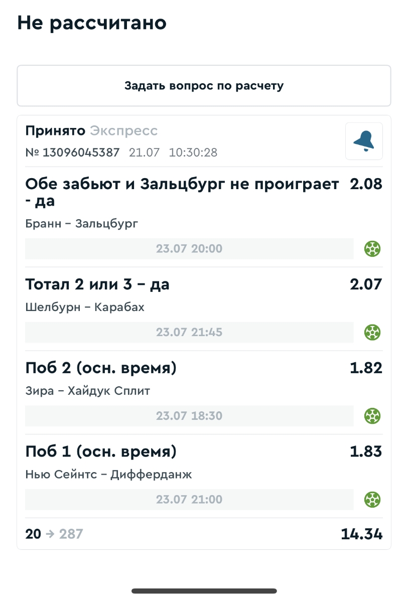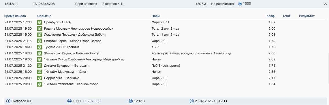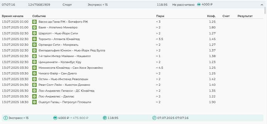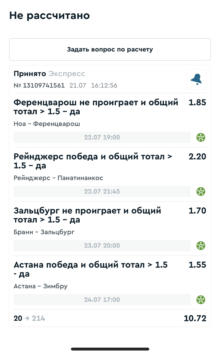 Koyaanisquatsi Hopi 98 Опубликовано 28 июля Автор Поделиться Опубликовано 28 июля На прошлой неделе все экспрессы проиграны, за неделю - 60 000, за год по экспрессам - 778 500 ₽, за июль - 245 000. Экспрессы с проставлением на неделю вперед себя не оправдывают, возвращаемся к системе ежедневных экспрессов. Экспрессы на 28.07.25 а так же недельные экспрессы до 03.08.25. Цитата Ссылка на комментарий https://brcbet.com/topic/429498-master-klass-po-razdevaniyu-bukmekera-tolko-fevral/page/23/#findComment-509428 Поделиться на другие сайты Поделиться