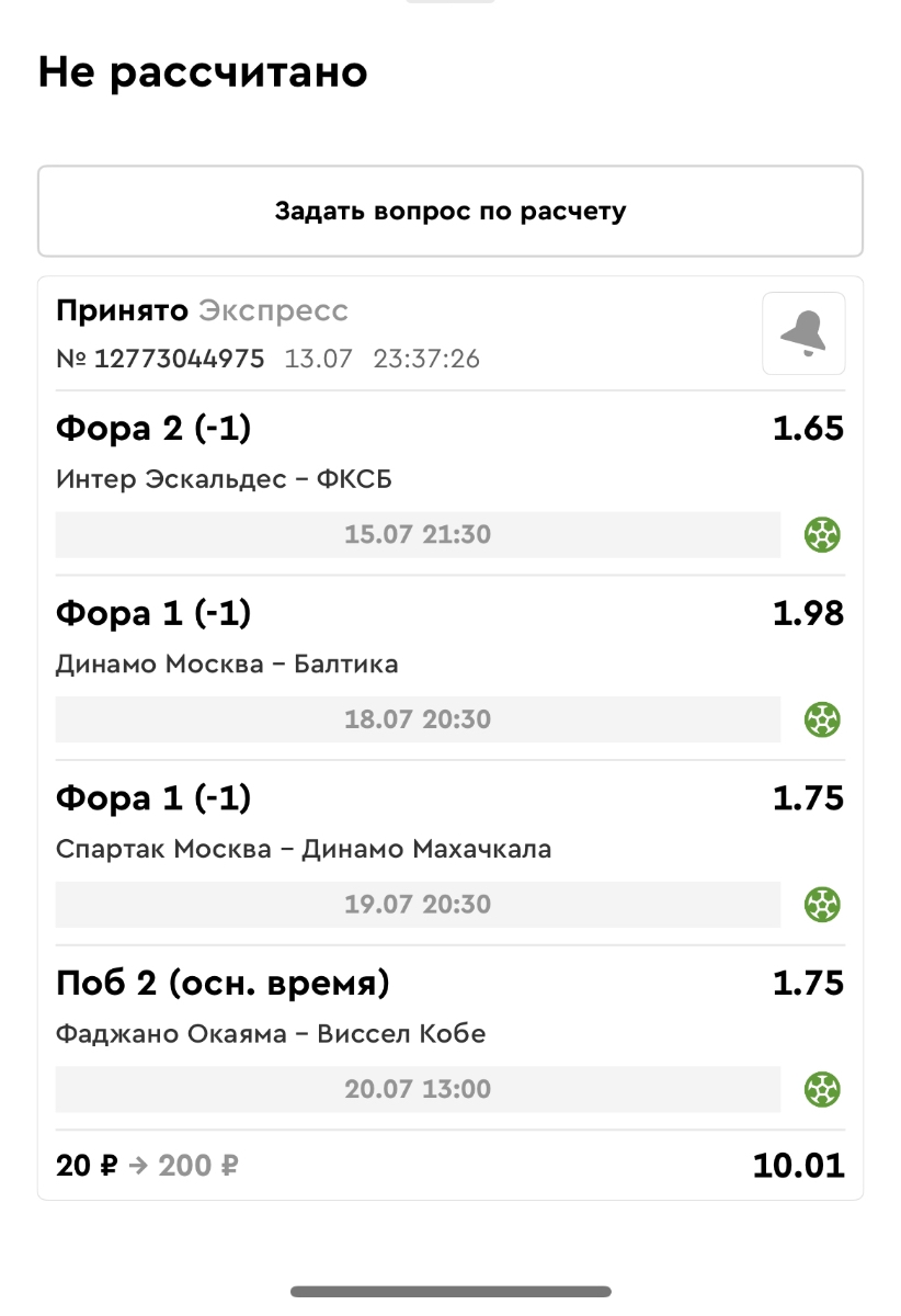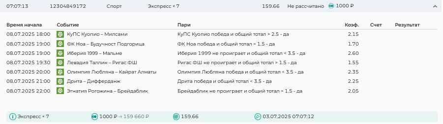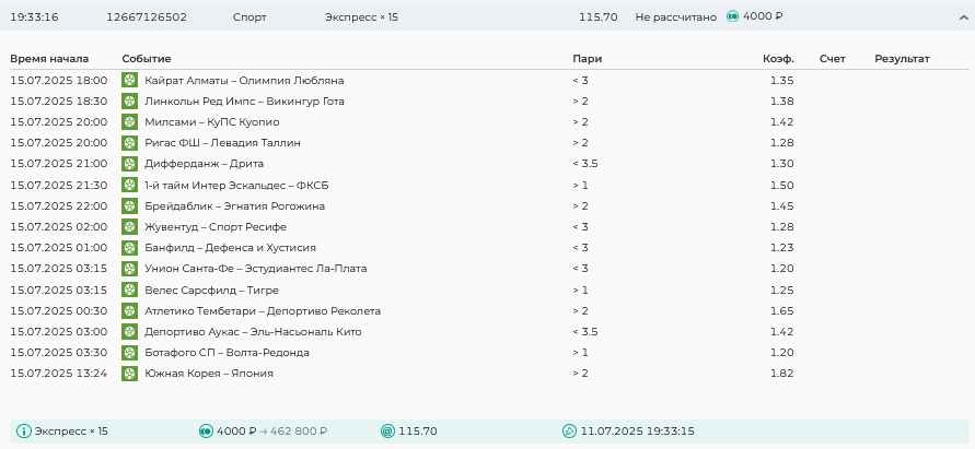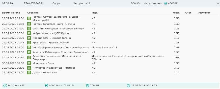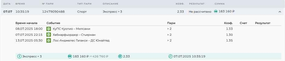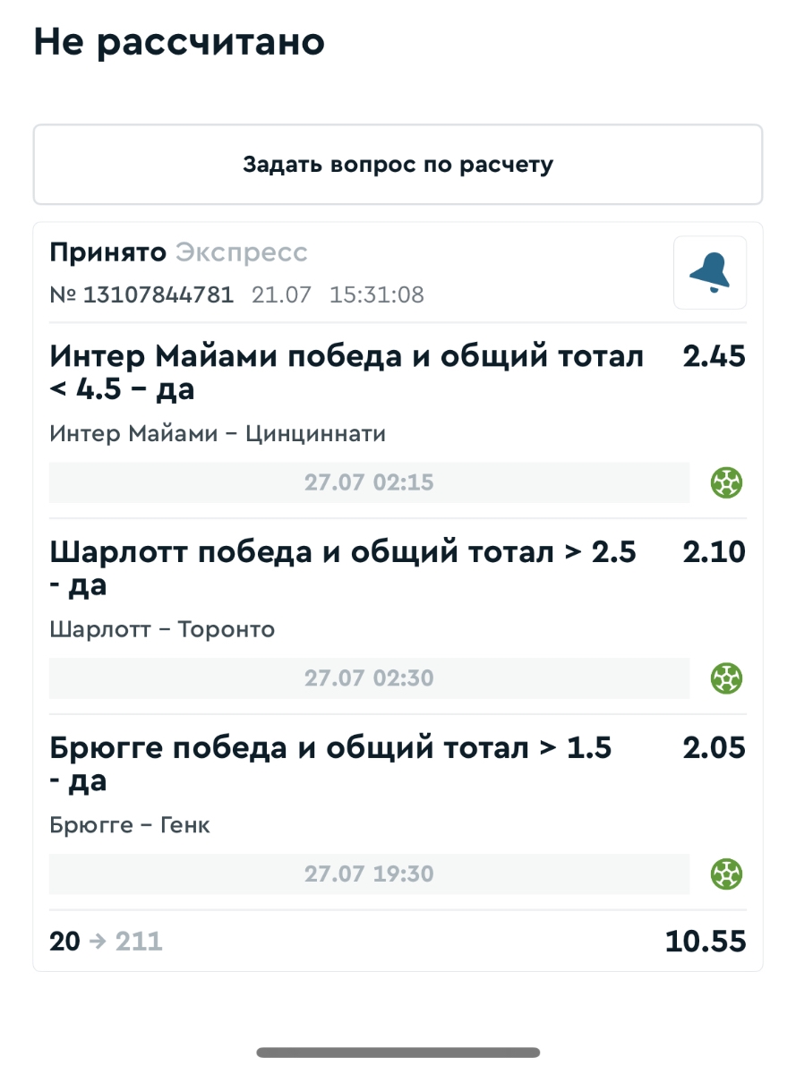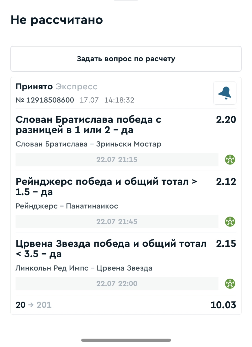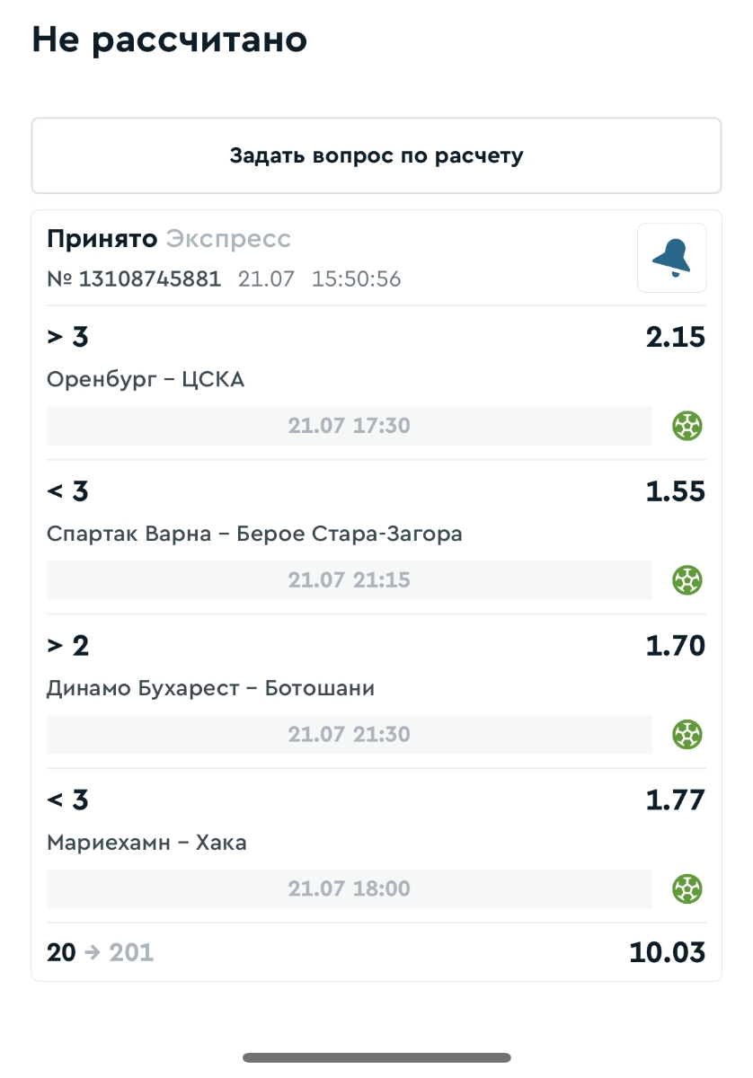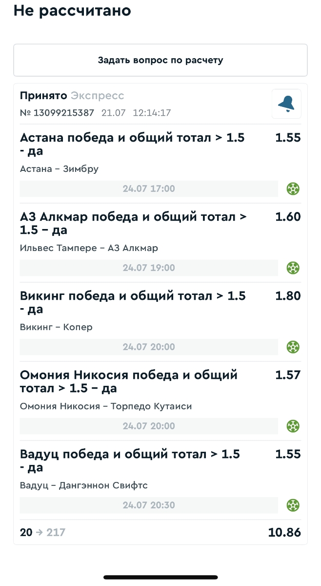 Koyaanisquatsi Hopi 98 Опубликовано 28 июля Автор Поделиться Опубликовано 28 июля На прошлой неделе все экспрессы проиграны, за неделю - 60 000, за год по экспрессам - 778 500 ₽, за июль - 245 000. Экспрессы с проставлением на неделю вперед себя не оправдывают, возвращаемся к системе ежедневных экспрессов. Экспрессы на 28.07.25 а так же недельные экспрессы до 03.08.25. Цитата Ссылка на комментарий https://brcbet.com/topic/429498-master-klass-po-razdevaniyu-bukmekera-tolko-fevral/page/23/#findComment-509428 Поделиться на другие сайты Поделиться