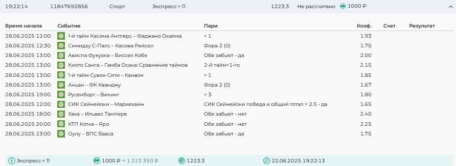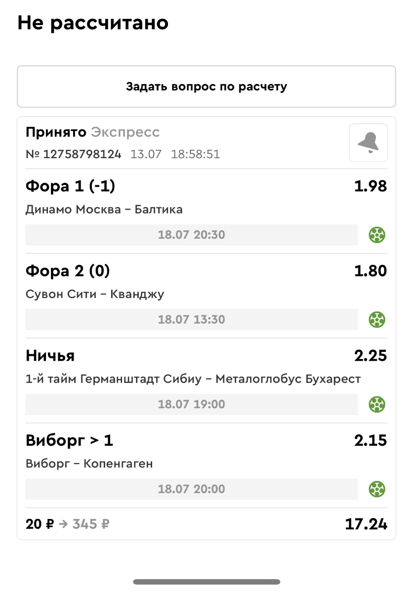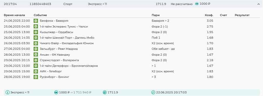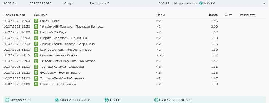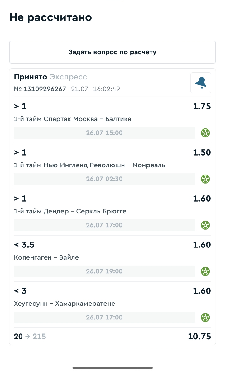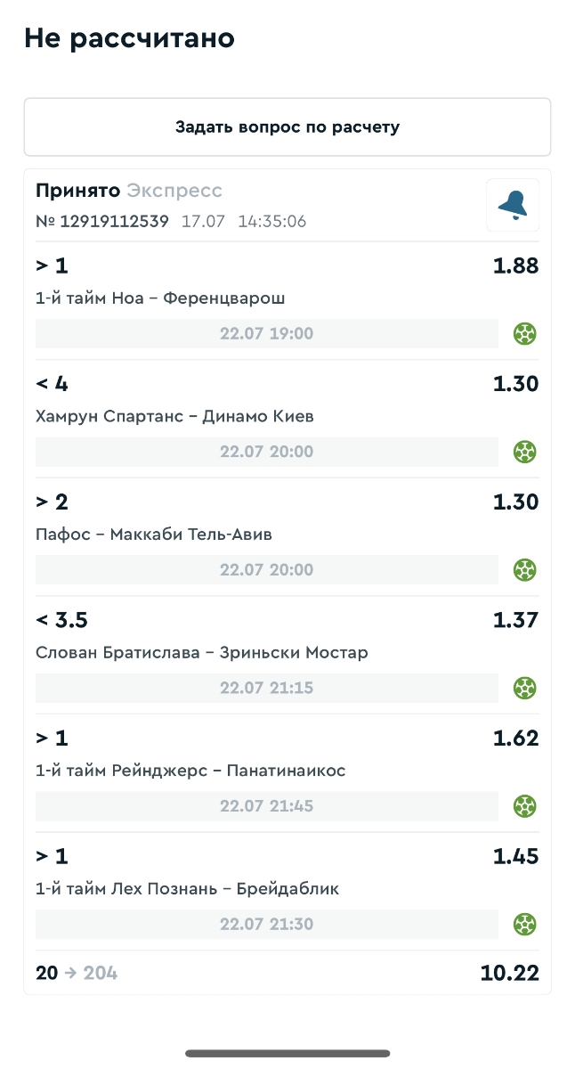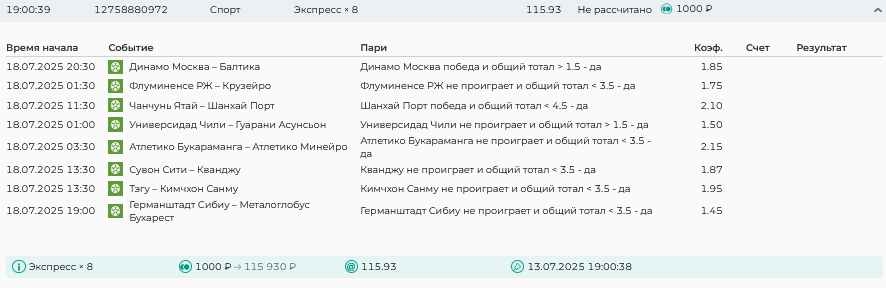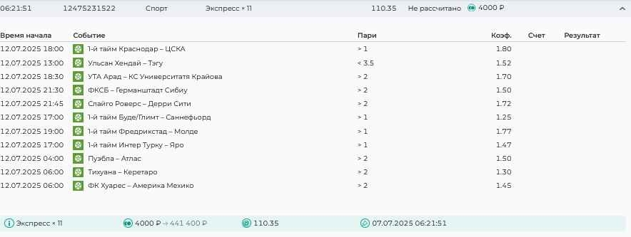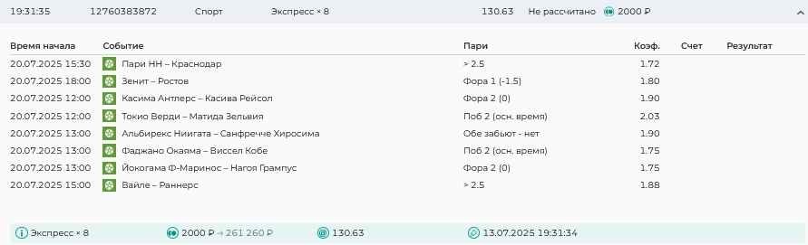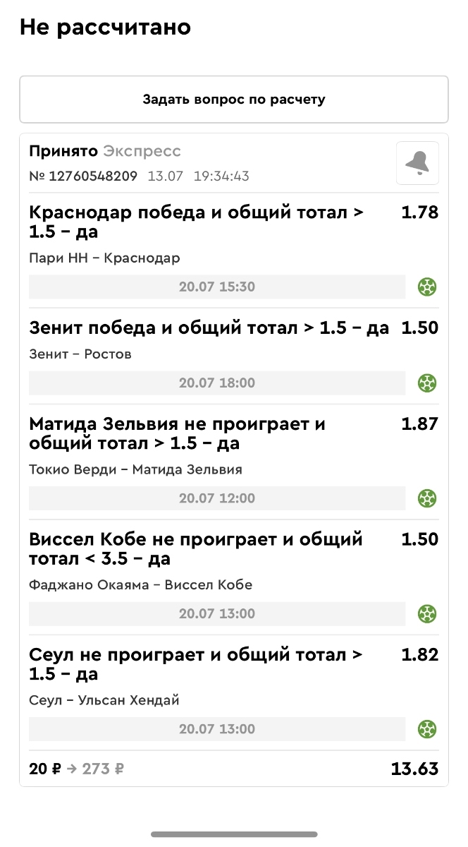 Koyaanisquatsi Hopi 98 Опубликовано 28 июля Автор Поделиться Опубликовано 28 июля На прошлой неделе все экспрессы проиграны, за неделю - 60 000, за год по экспрессам - 778 500 ₽, за июль - 245 000. Экспрессы с проставлением на неделю вперед себя не оправдывают, возвращаемся к системе ежедневных экспрессов. Экспрессы на 28.07.25 а так же недельные экспрессы до 03.08.25. Цитата Ссылка на комментарий https://brcbet.com/topic/429498-master-klass-po-razdevaniyu-bukmekera-tolko-fevral/page/23/#findComment-509428 Поделиться на другие сайты Поделиться