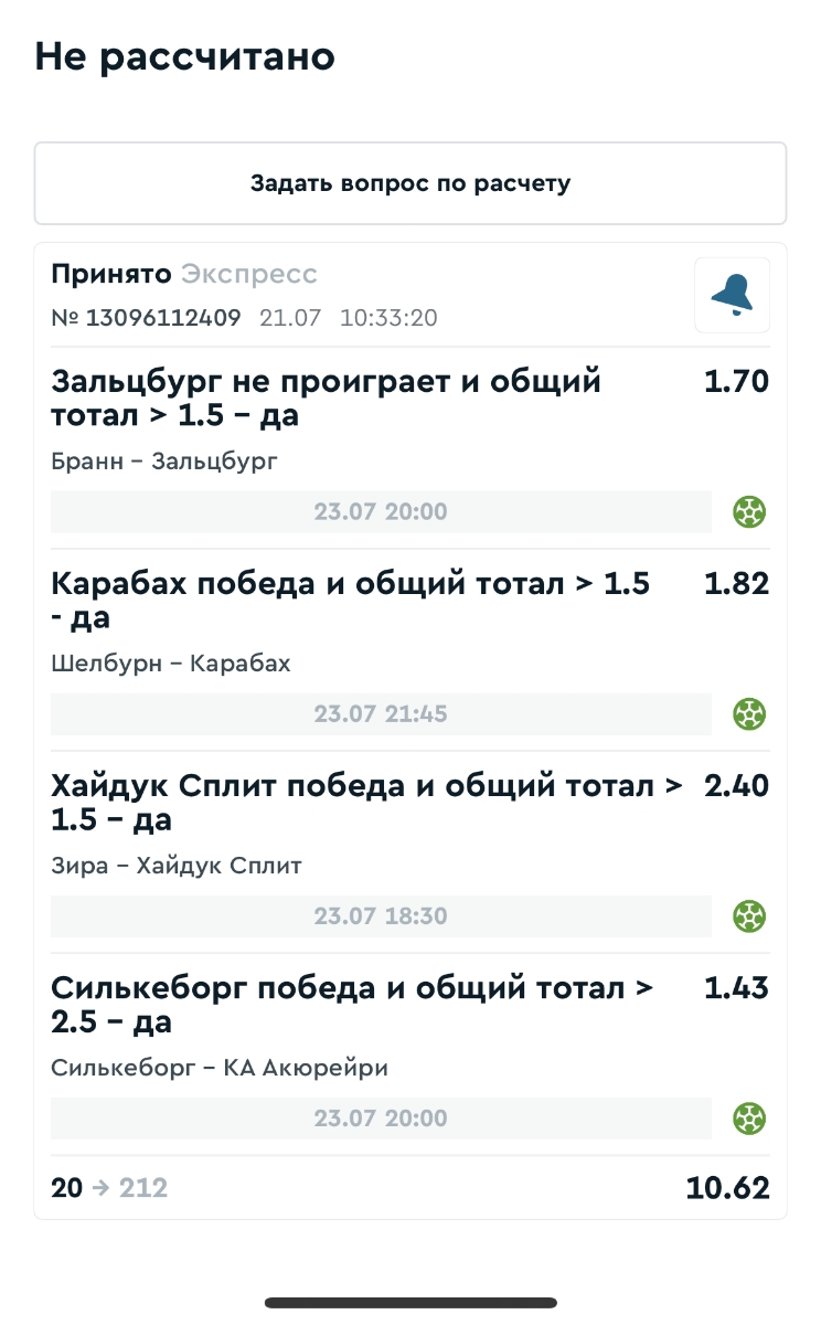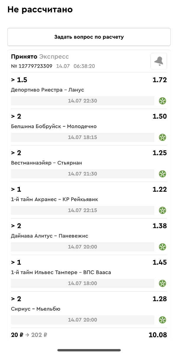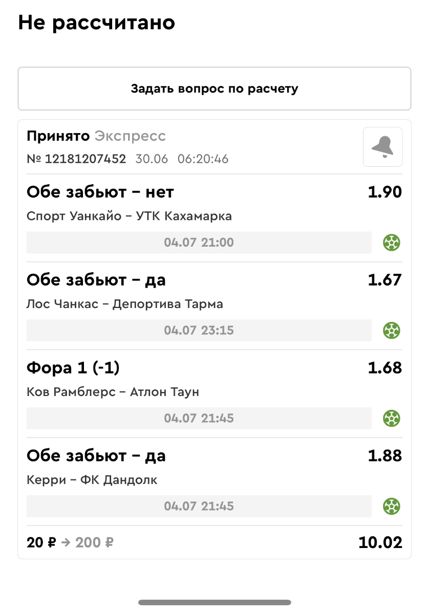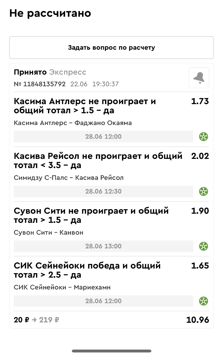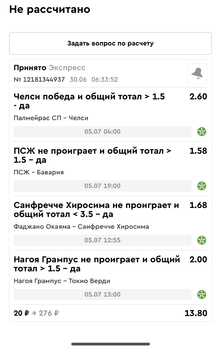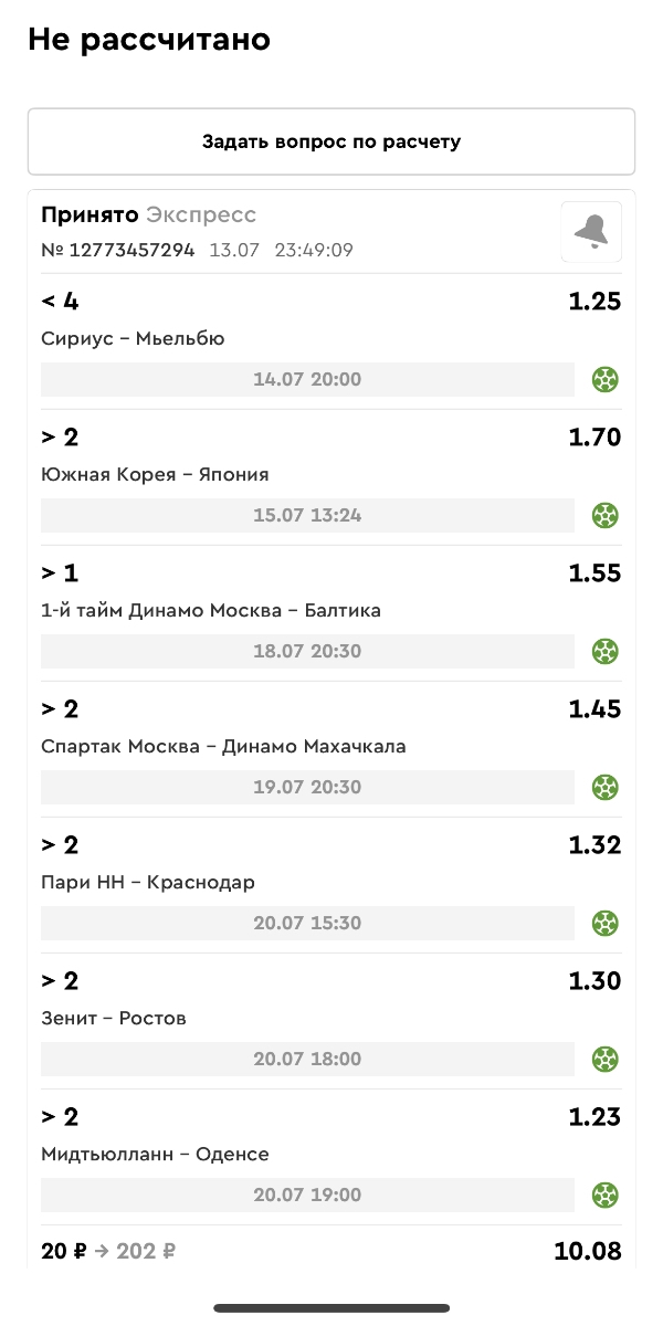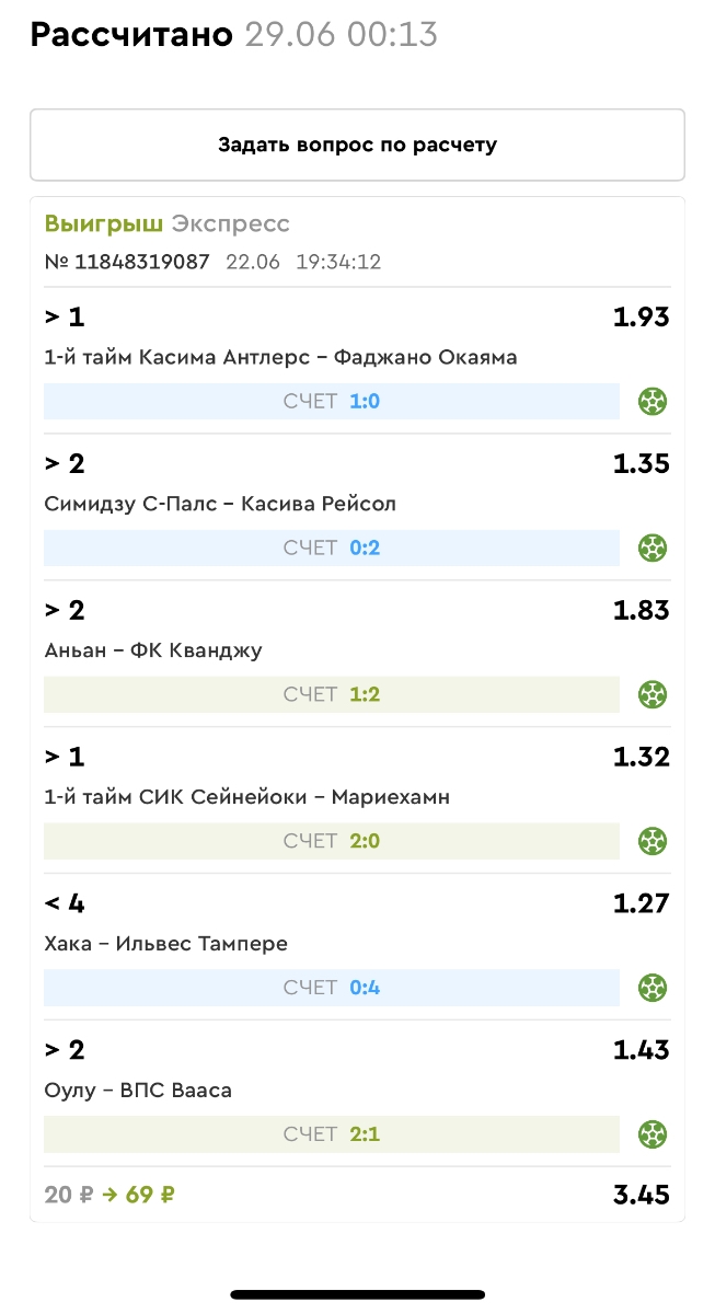 Koyaanisquatsi Hopi 98 Опубликовано 23 июня Автор Поделиться Опубликовано 23 июня Мини экспрессы ежедневные с 16.06.25 по 22.06.25 все проиграли кроме одного мини тотала и двух мини экспрессов8 выиграли с возвратами , их проставляем сегодня! Итого банк -134 ₽ за неделю; +5074₽ +1,48%! Мини экспрессы на эту неделю с 23.06.25 по 29.05.25 Цитата Ссылка на комментарий https://brcbet.com/topic/429498-master-klass-po-razdevaniyu-bukmekera-tolko-fevral/page/23/#findComment-508429 Поделиться на другие сайты Поделиться