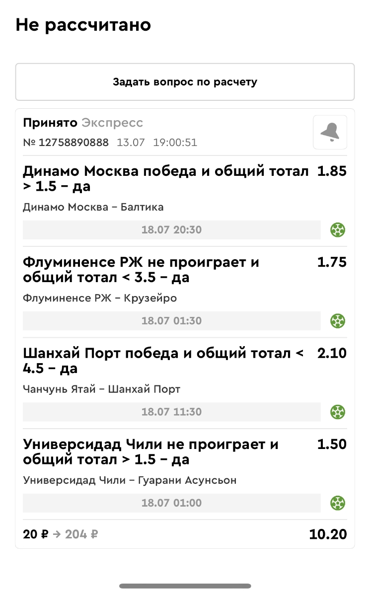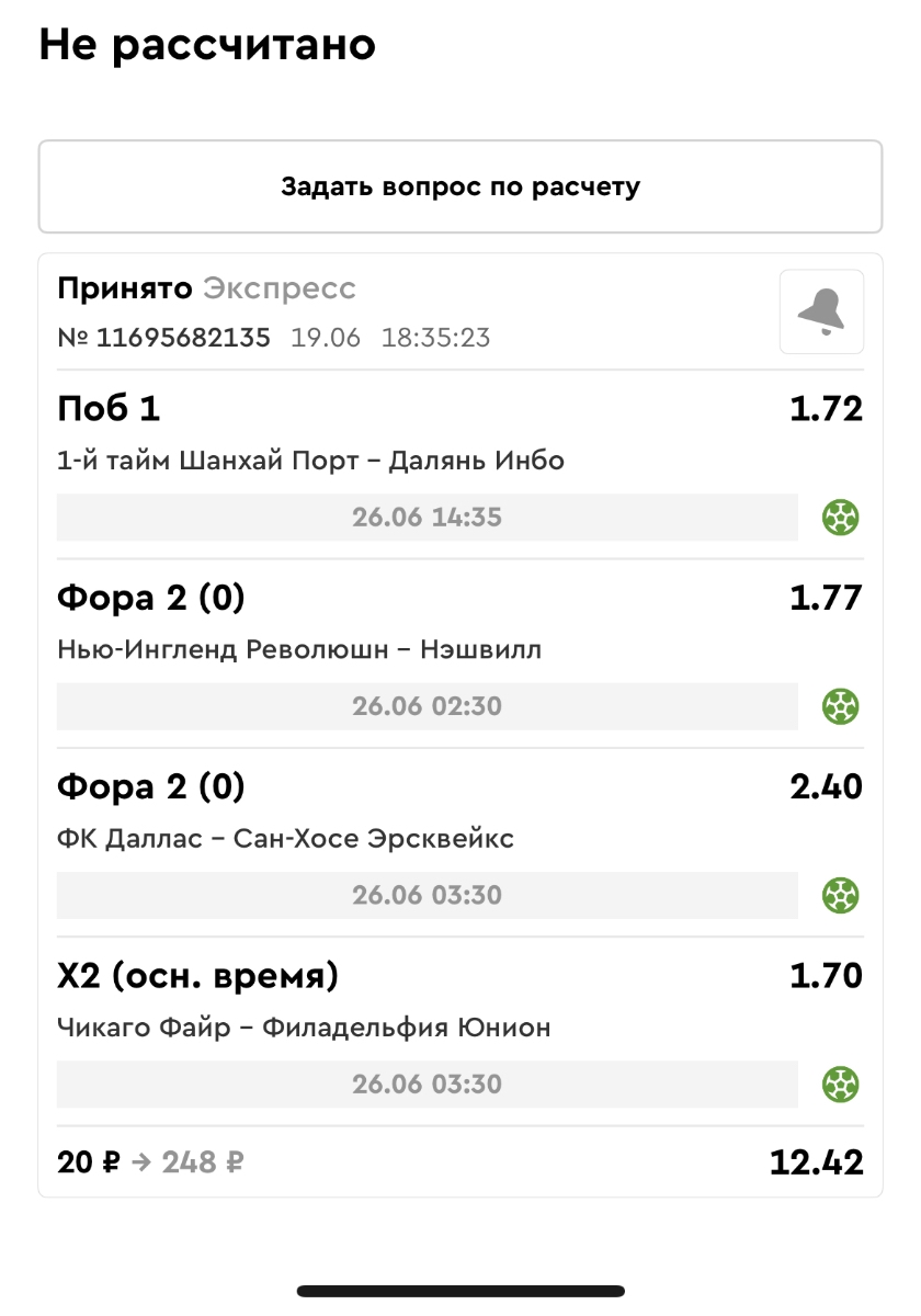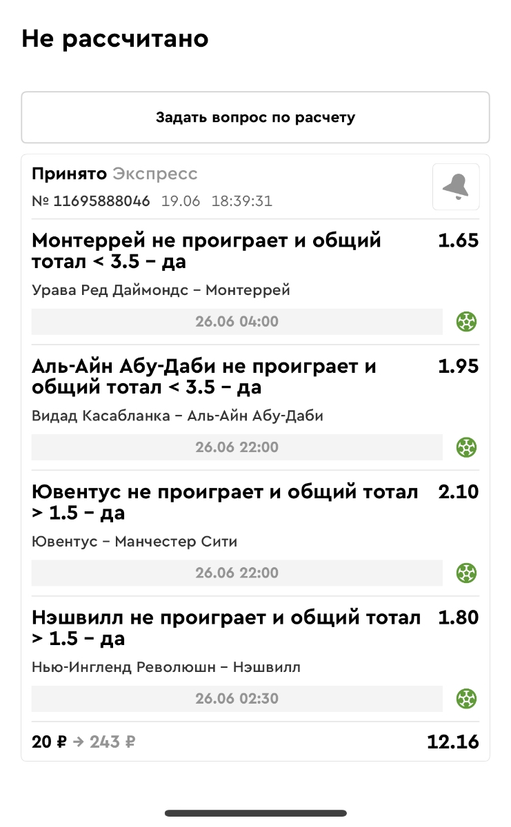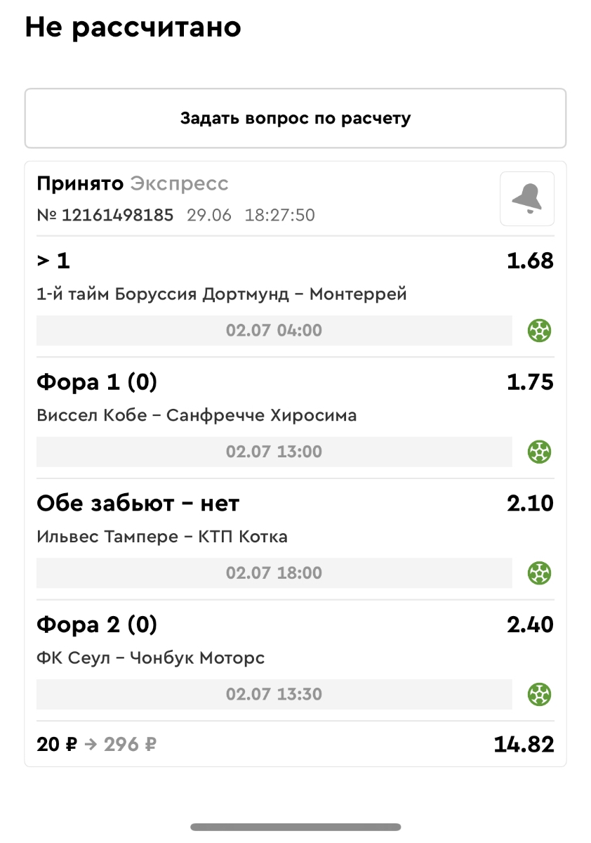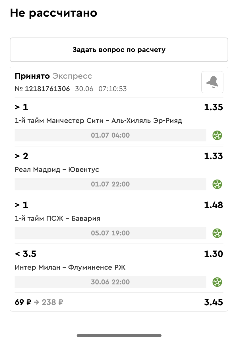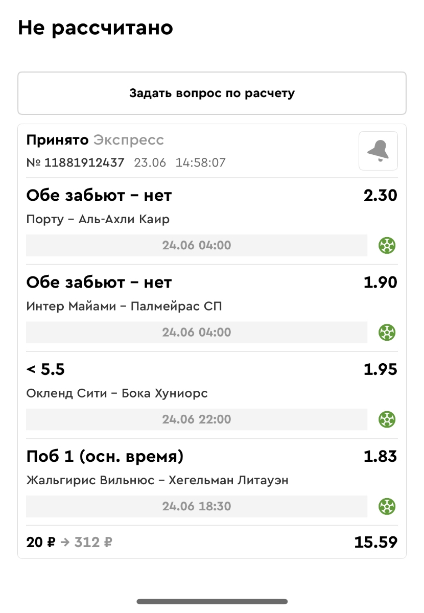 Koyaanisquatsi Hopi 98 Опубликовано 23 июня Автор Поделиться Опубликовано 23 июня Мини экспрессы ежедневные с 16.06.25 по 22.06.25 все проиграли кроме одного мини тотала и двух мини экспрессов8 выиграли с возвратами , их проставляем сегодня! Итого банк -134 ₽ за неделю; +5074₽ +1,48%! Мини экспрессы на эту неделю с 23.06.25 по 29.05.25 Цитата Ссылка на комментарий https://brcbet.com/topic/429498-master-klass-po-razdevaniyu-bukmekera-tolko-fevral/page/23/#findComment-508429 Поделиться на другие сайты Поделиться