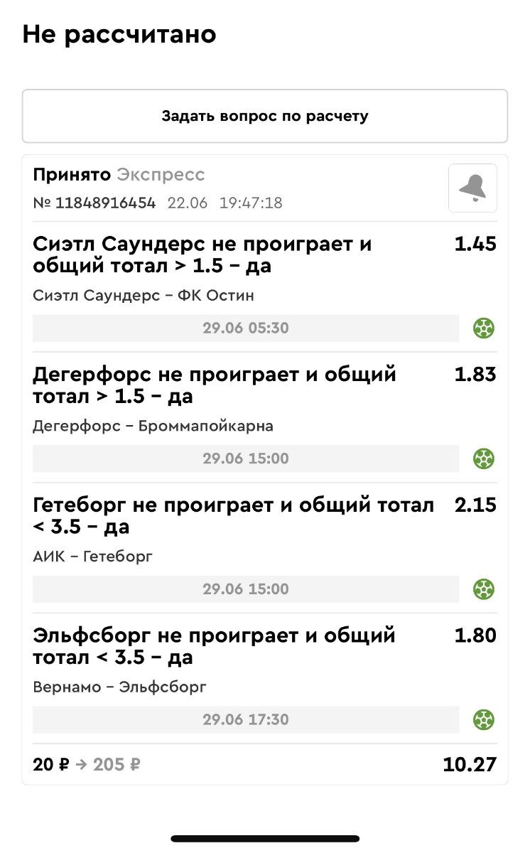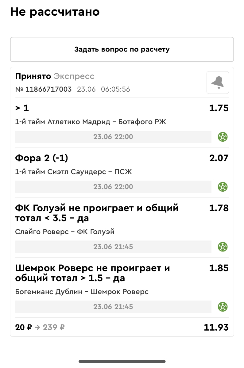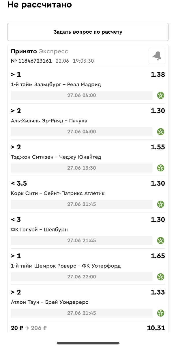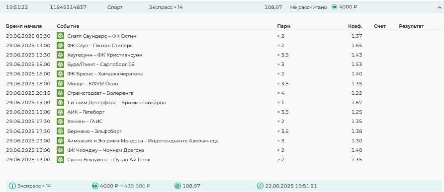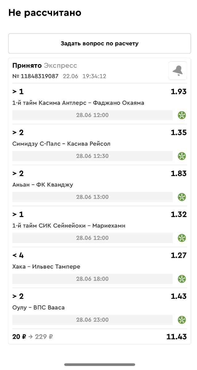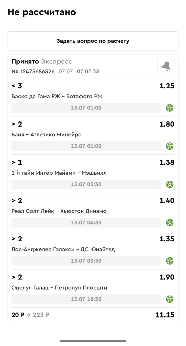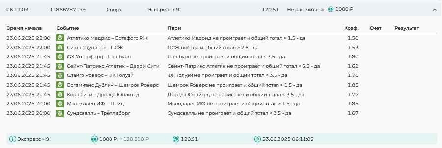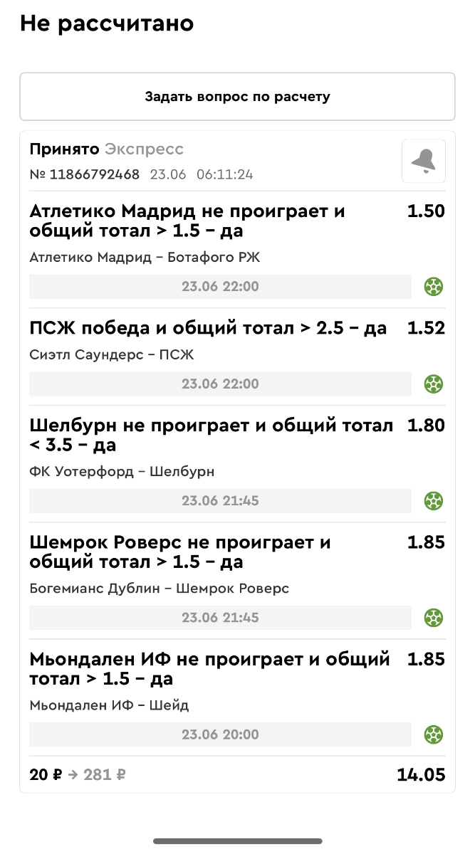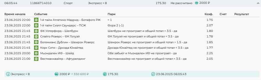 Koyaanisquatsi Hopi 98 Опубликовано 23 июня Автор Поделиться Опубликовано 23 июня Мини экспрессы ежедневные с 16.06.25 по 22.06.25 все проиграли кроме одного мини тотала и двух мини экспрессов8 выиграли с возвратами , их проставляем сегодня! Итого банк -134 ₽ за неделю; +5074₽ +1,48%! Мини экспрессы на эту неделю с 23.06.25 по 29.05.25 Цитата Ссылка на комментарий https://brcbet.com/topic/429498-master-klass-po-razdevaniyu-bukmekera-tolko-fevral/page/23/#findComment-508429 Поделиться на другие сайты Поделиться