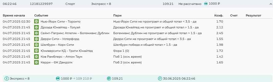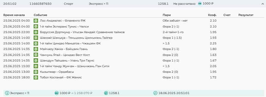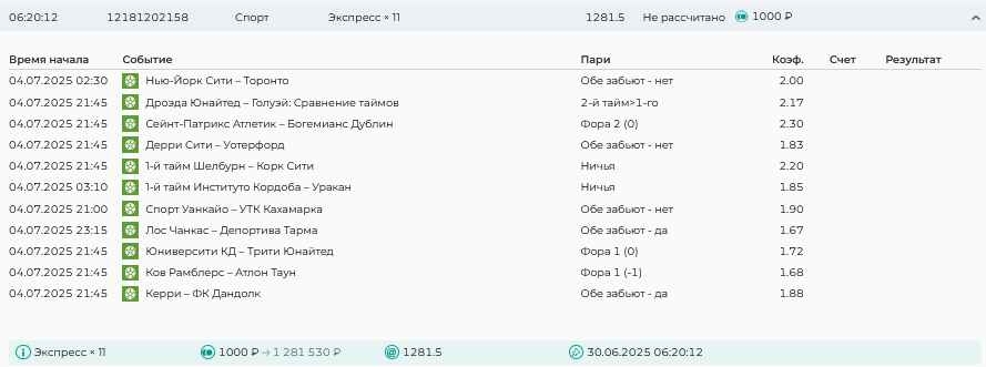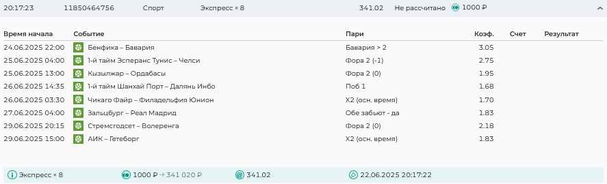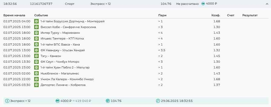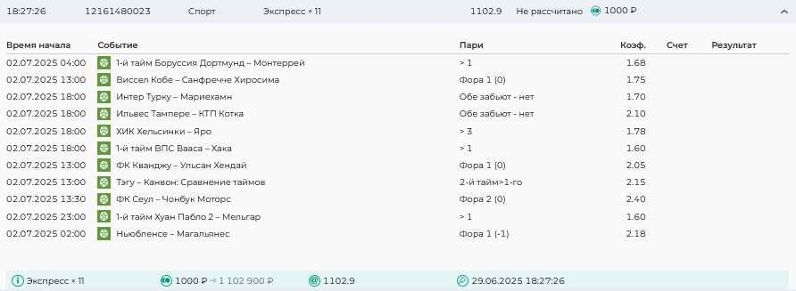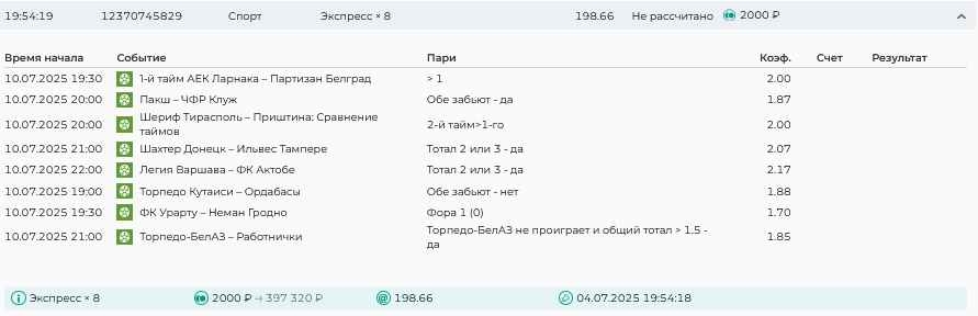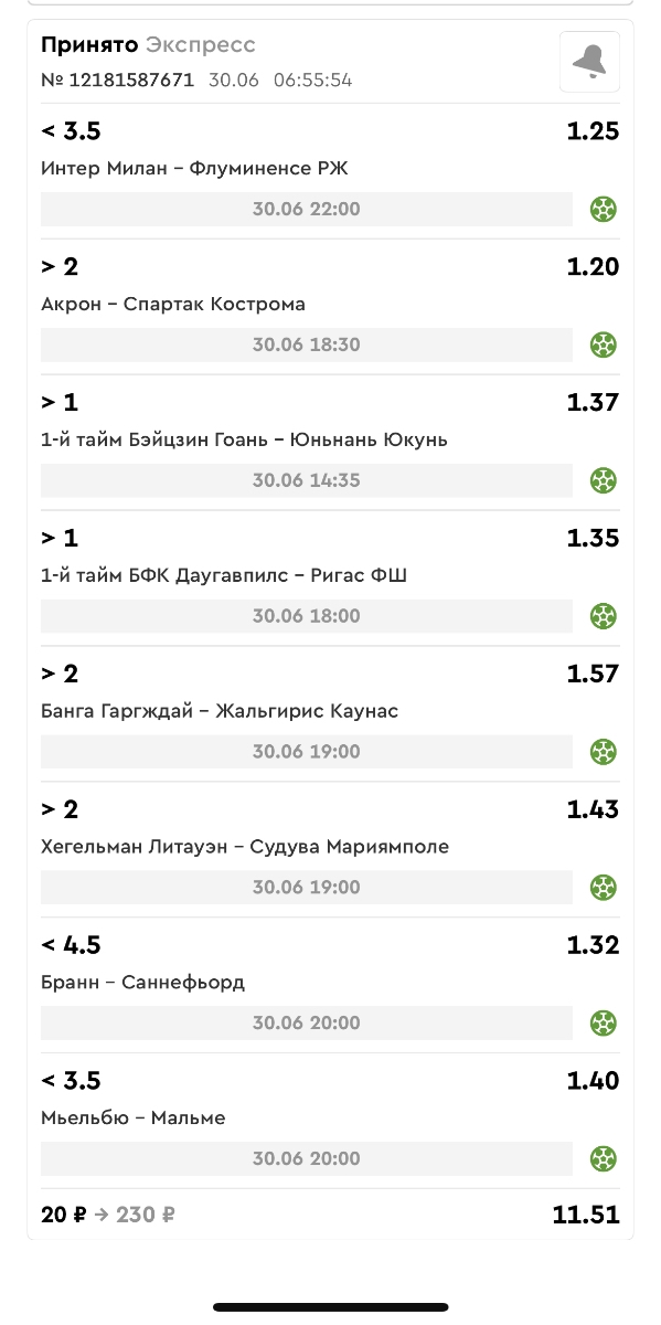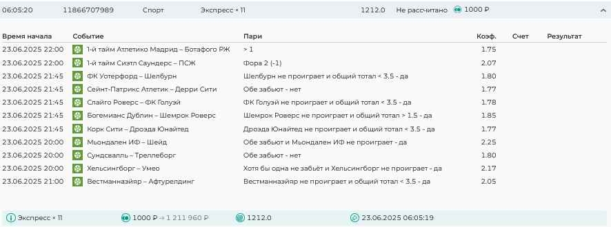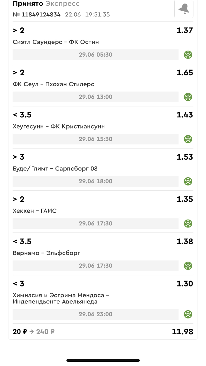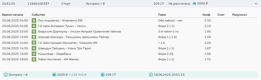 Koyaanisquatsi Hopi 98 Опубликовано 30 июня Автор Поделиться Опубликовано 30 июня На прошлой неделе все экспрессы проиграны за неделю - 60 000, за год по экспрессам - 544 500 ₽, за июнь - 240 000. Ежедневные экспрессы на неделю с 30.06.25 по 06.07.25! Цитата Ссылка на комментарий https://brcbet.com/topic/429498-master-klass-po-razdevaniyu-bukmekera-tolko-fevral/page/23/#findComment-508624 Поделиться на другие сайты Поделиться