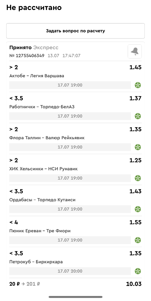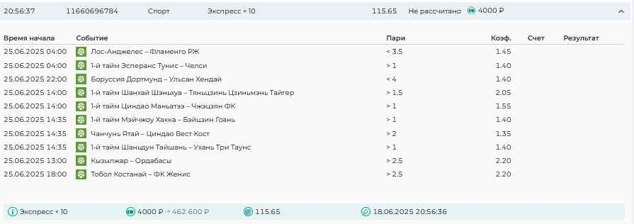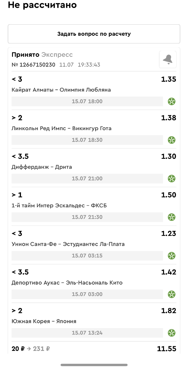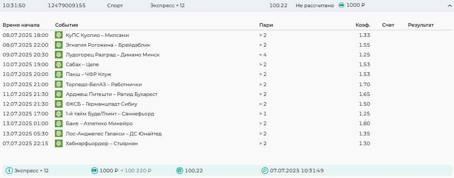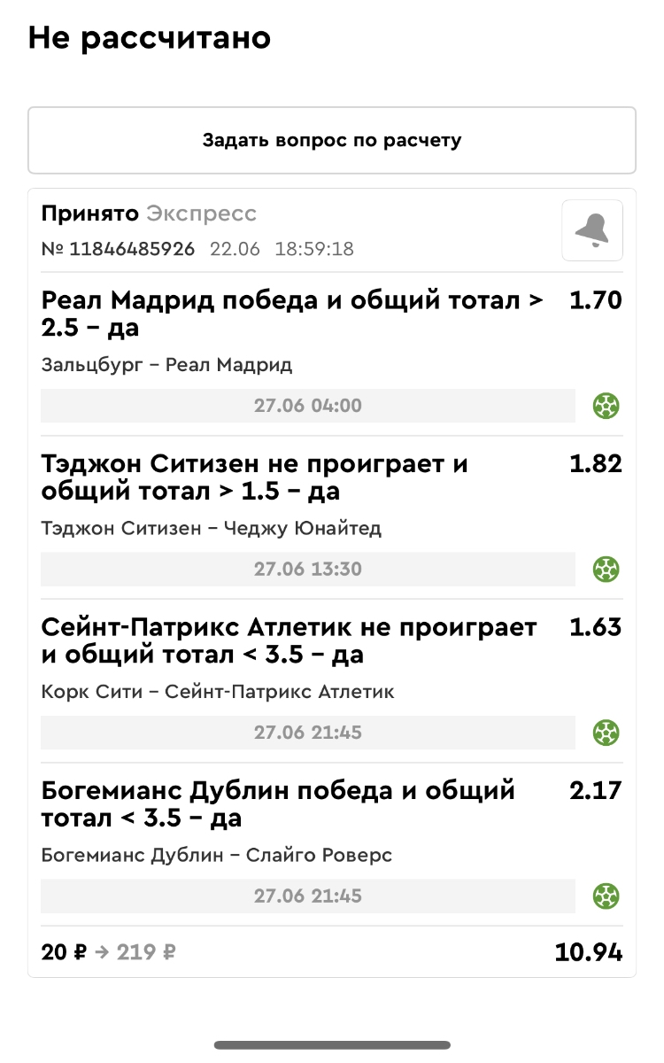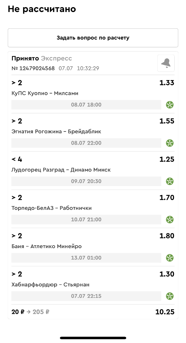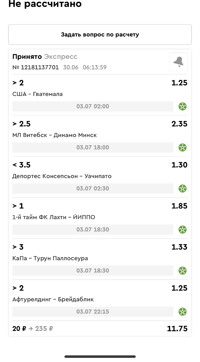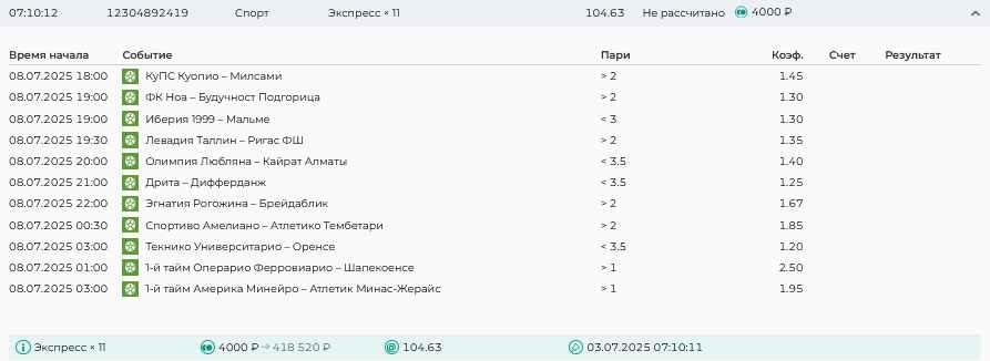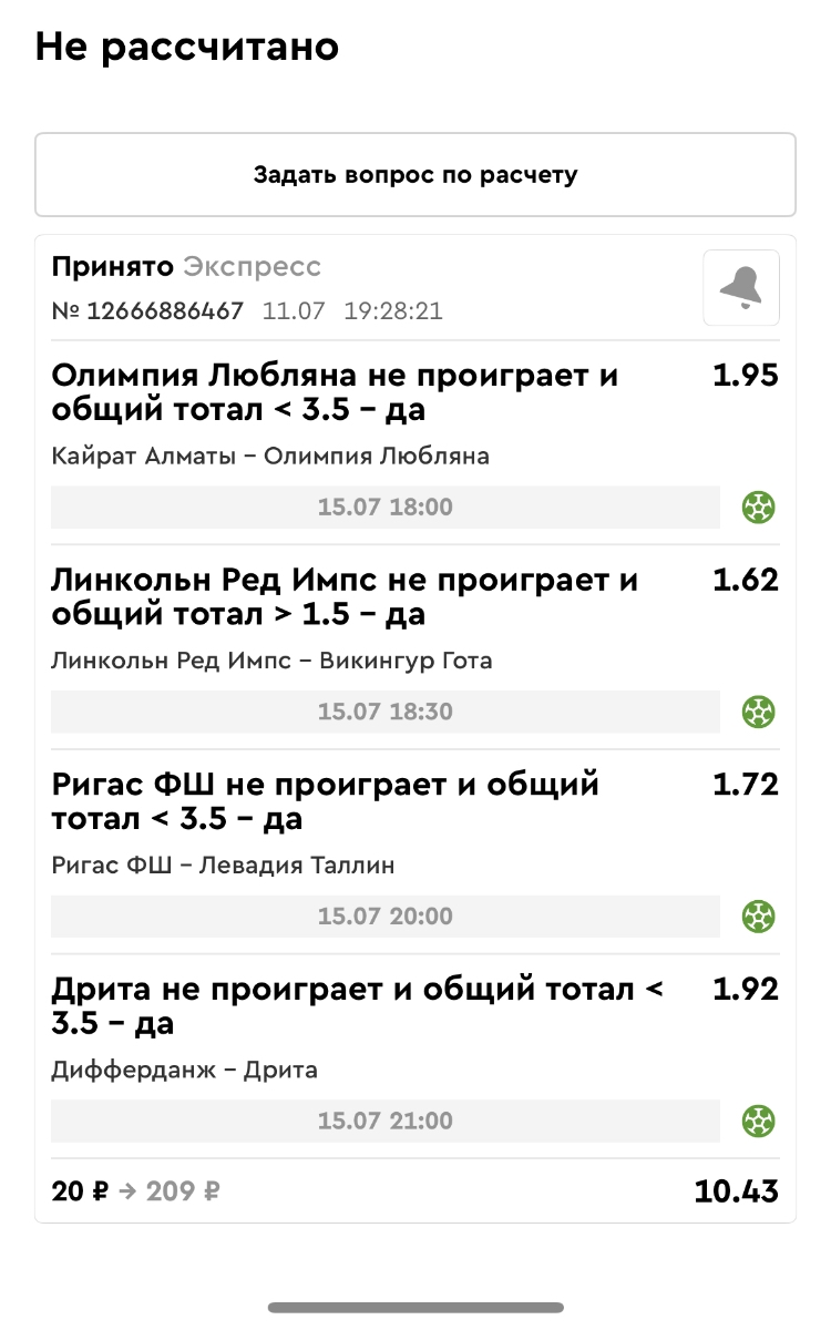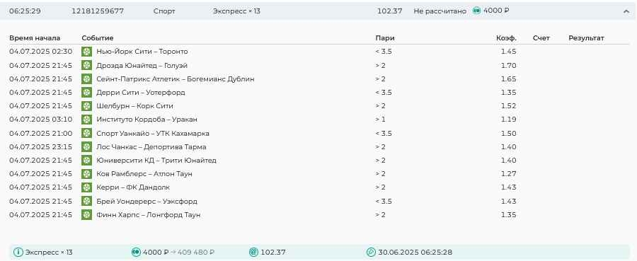 Koyaanisquatsi Hopi 98 Опубликовано 30 июня Автор Поделиться Опубликовано 30 июня Мини экспрессы недели на эту неделю ! С 22.06.25 по 29.06.25 все проиграли,кроме тотала, по нему выигрыш с возвратами, разгоняем его дальше.Итого Банк - 40₽, -12,8% от банка, 4360 ₽.Мини экспрессы недели на эту неделю ! С 30.06.25 по 06.07.25 Цитата Ссылка на комментарий https://brcbet.com/topic/429498-master-klass-po-razdevaniyu-bukmekera-tolko-fevral/page/23/#findComment-508620 Поделиться на другие сайты Поделиться