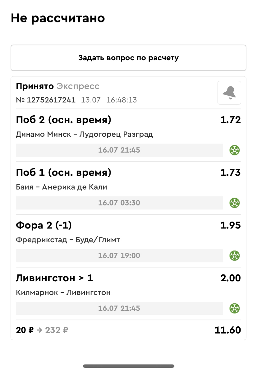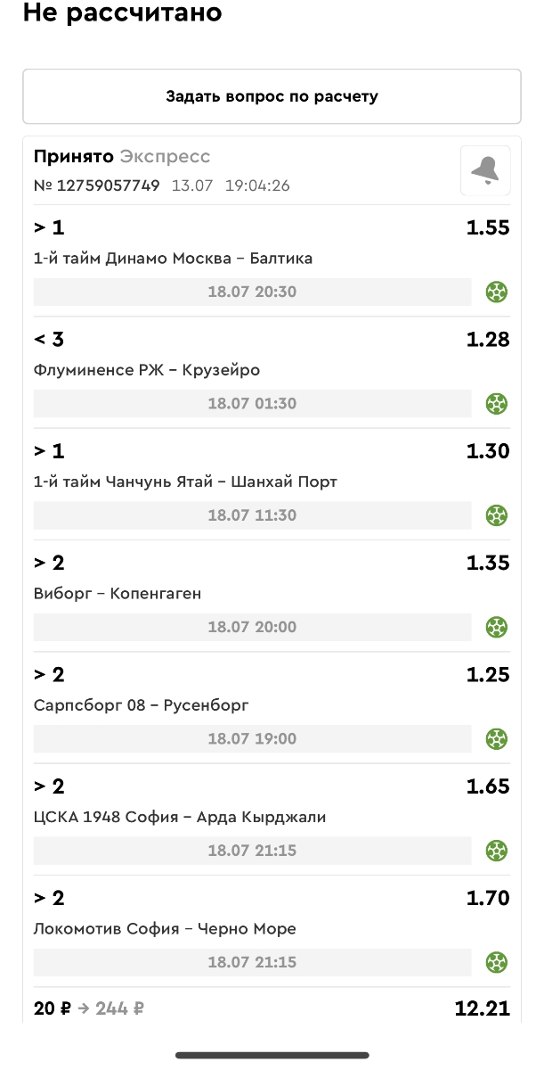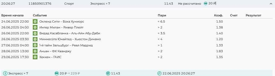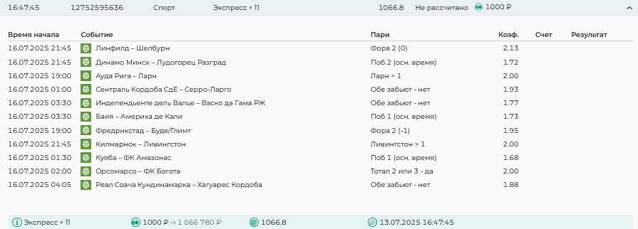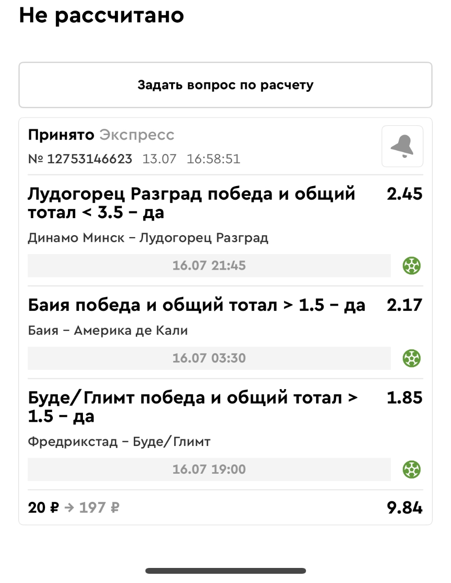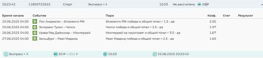 Koyaanisquatsi Hopi 98 Опубликовано 21 июля Автор Поделиться Опубликовано 21 июля Мини экспрессы недели С 14.07.25 по 20.07.25 все проиграли! Итого банк -60₽, -16,8%, 4160₽!Мини экспрессы недели на эту неделю ! С 21.07.25 по 27.07.25 Цитата Ссылка на комментарий https://brcbet.com/topic/429498-master-klass-po-razdevaniyu-bukmekera-tolko-fevral/page/23/#findComment-509182 Поделиться на другие сайты Поделиться