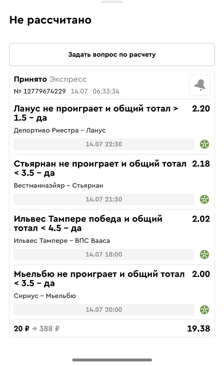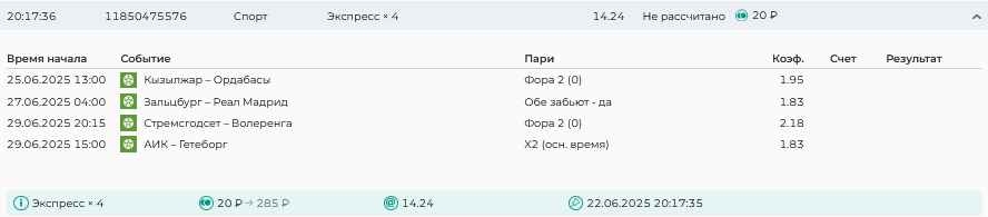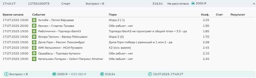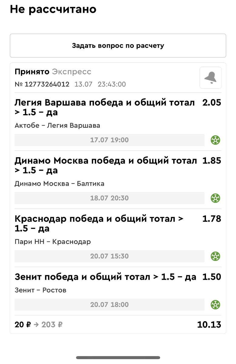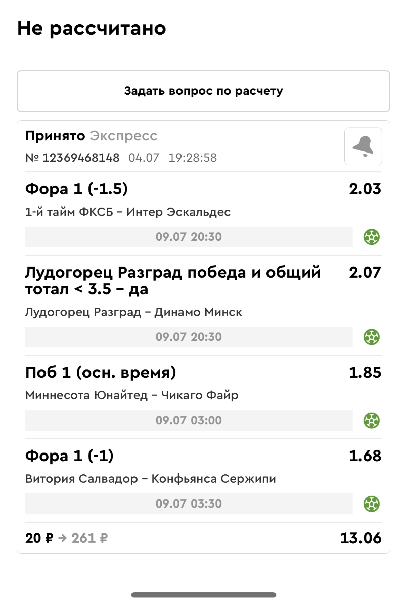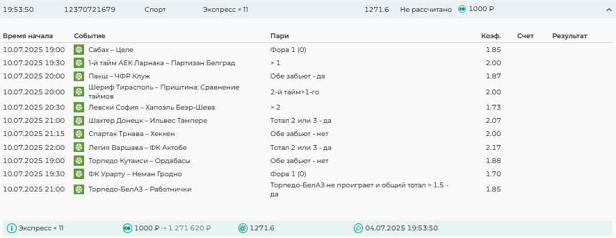 Koyaanisquatsi Hopi 98 Опубликовано 21 июля Автор Поделиться Опубликовано 21 июля Мини экспрессы недели С 14.07.25 по 20.07.25 все проиграли! Итого банк -60₽, -16,8%, 4160₽!Мини экспрессы недели на эту неделю ! С 21.07.25 по 27.07.25 Цитата Ссылка на комментарий https://brcbet.com/topic/429498-master-klass-po-razdevaniyu-bukmekera-tolko-fevral/page/23/#findComment-509182 Поделиться на другие сайты Поделиться
