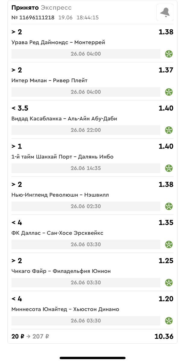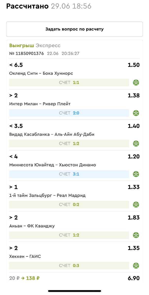 Koyaanisquatsi Hopi 98 Опубликовано 30 июня Автор Поделиться Опубликовано 30 июня Мини экспрессы ежедневные с 22.06.25 по 29.06.25 все проиграли кроме трех мини тоталов и одного мини экспресса8 выиграли с возвратами , их проставляем сегодня! Мини экспресс 8 зашел полностью. Итого банк -112 ₽ за неделю; 4962₽ -0,76%! Мини экспрессы на эту неделю с 30.06.25 по 06.06.25 Цитата Ссылка на комментарий https://brcbet.com/topic/429498-master-klass-po-razdevaniyu-bukmekera-tolko-fevral/page/23/#findComment-508622 Поделиться на другие сайты Поделиться