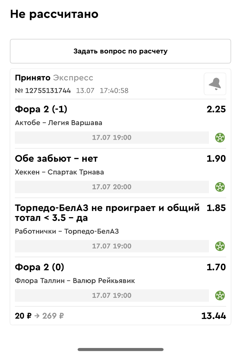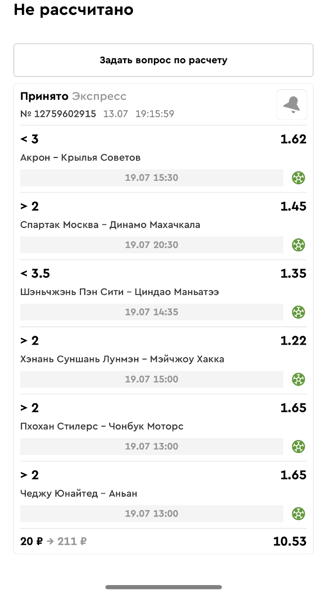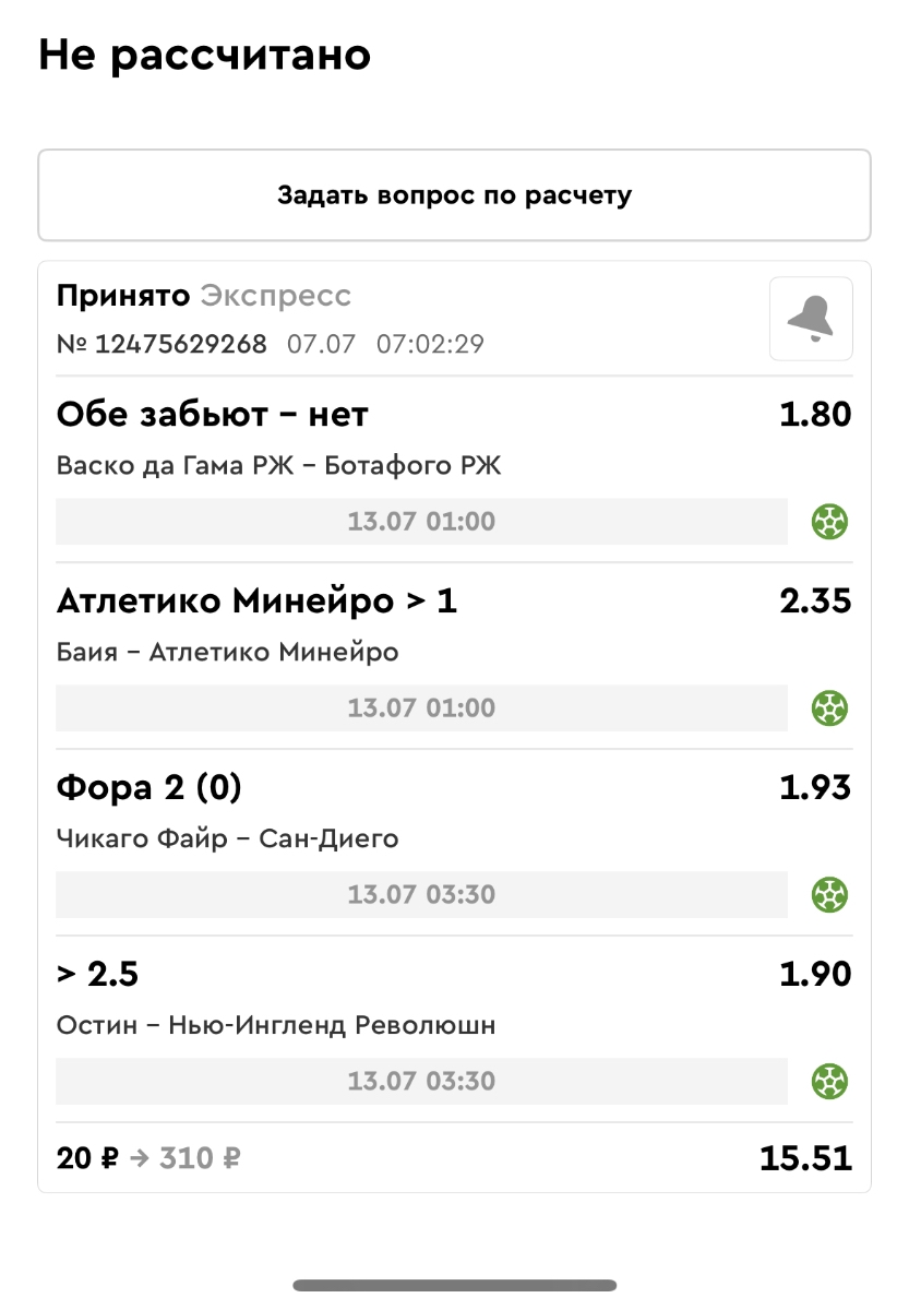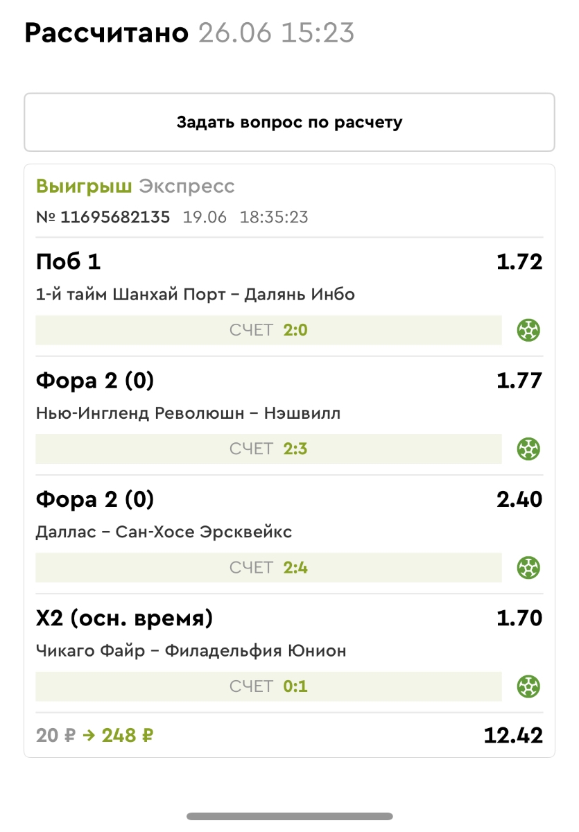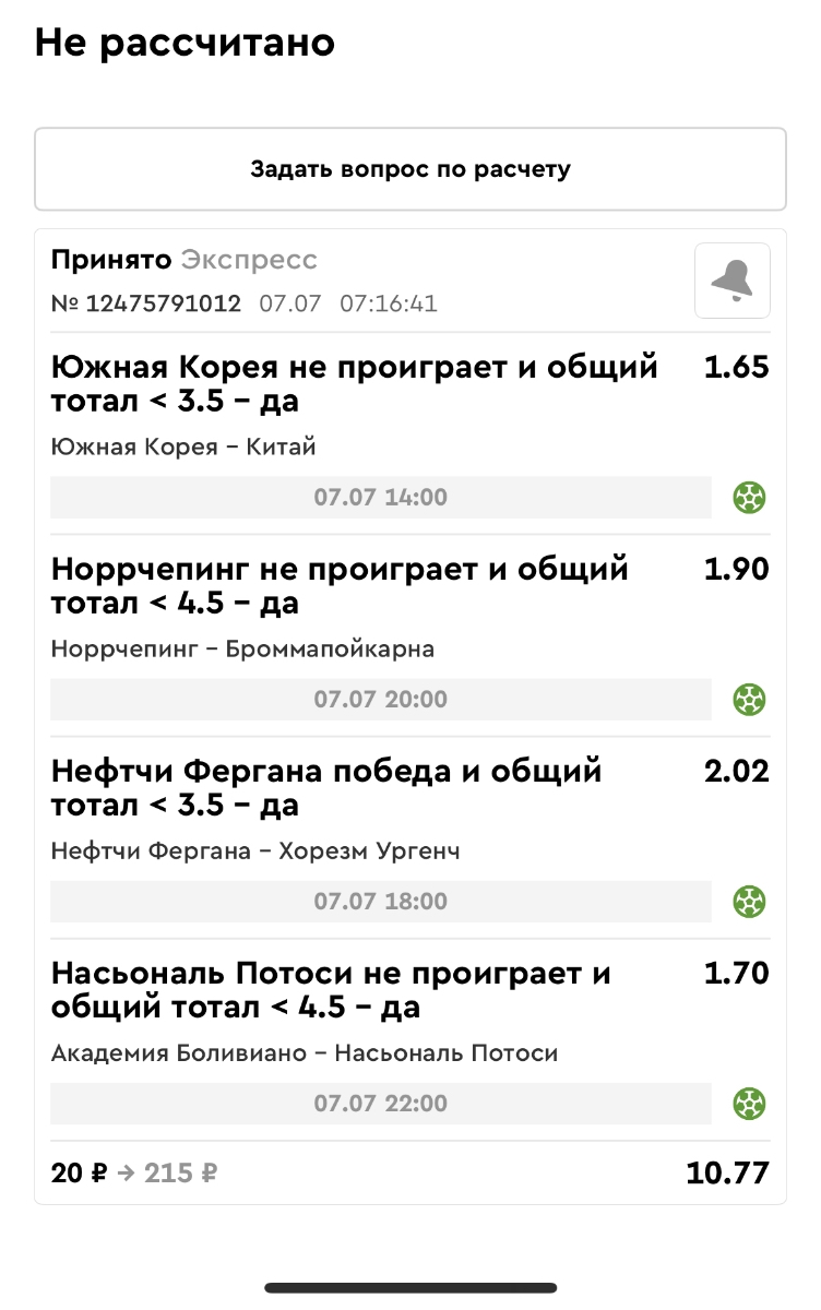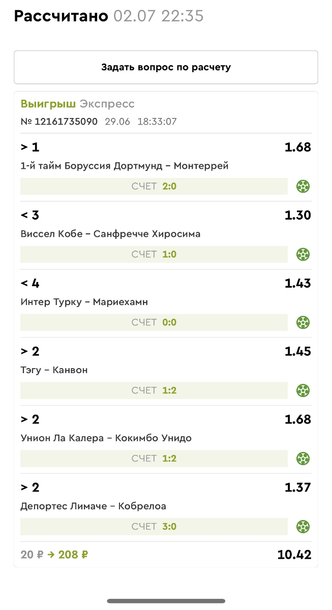 Koyaanisquatsi Hopi 98 Опубликовано 14 июля Автор Поделиться Опубликовано 14 июля Мини экспрессы ежедневные с 07.07.25 по 13.07.25 все проиграли кроме одного Тотал+исход, он зашел полностью. Итого банк -253 ₽ за неделю; Банк 4437₽ -11,26%! Мини экспрессы на эту неделю с 04.07.25 по 20.07.25 Цитата Ссылка на комментарий https://brcbet.com/topic/429498-master-klass-po-razdevaniyu-bukmekera-tolko-fevral/page/23/#findComment-508974 Поделиться на другие сайты Поделиться