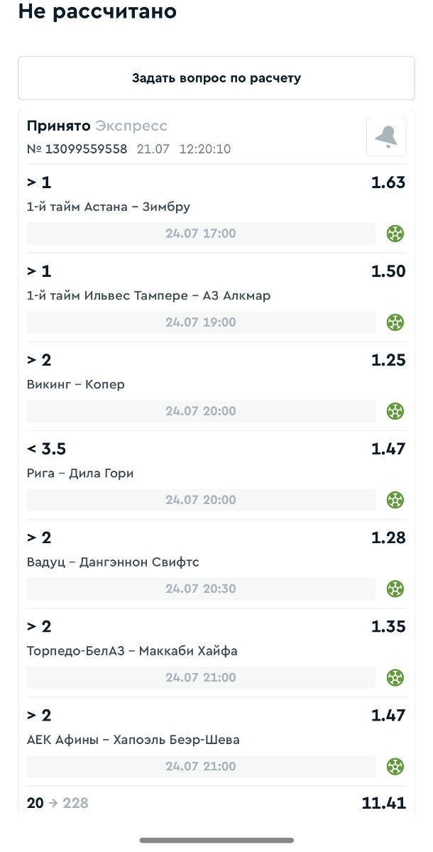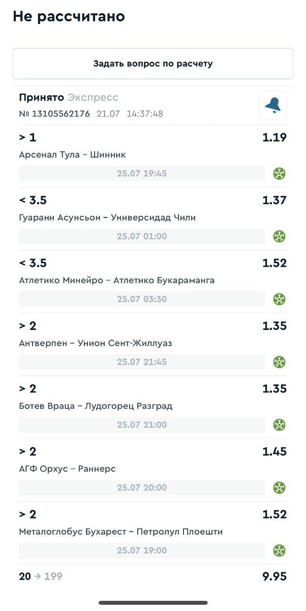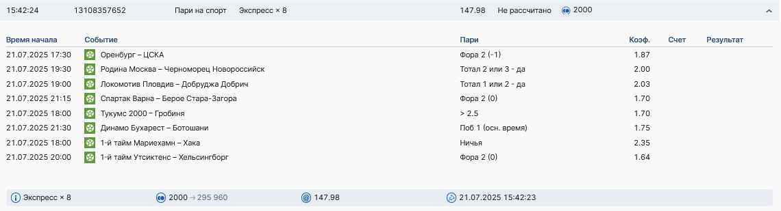 Koyaanisquatsi Hopi 98 Опубликовано 21 июля Автор Поделиться Опубликовано 21 июля На прошлой неделе все экспрессы проиграны, за неделю - 60 000, за год по экспрессам - 718 500 ₽, за июль - 185 000. Ежедневные экспрессы на неделю с 20.07.25 по 27.07.25! Цитата Ссылка на комментарий https://brcbet.com/topic/429498-master-klass-po-razdevaniyu-bukmekera-tolko-fevral/page/23/#findComment-509185 Поделиться на другие сайты Поделиться