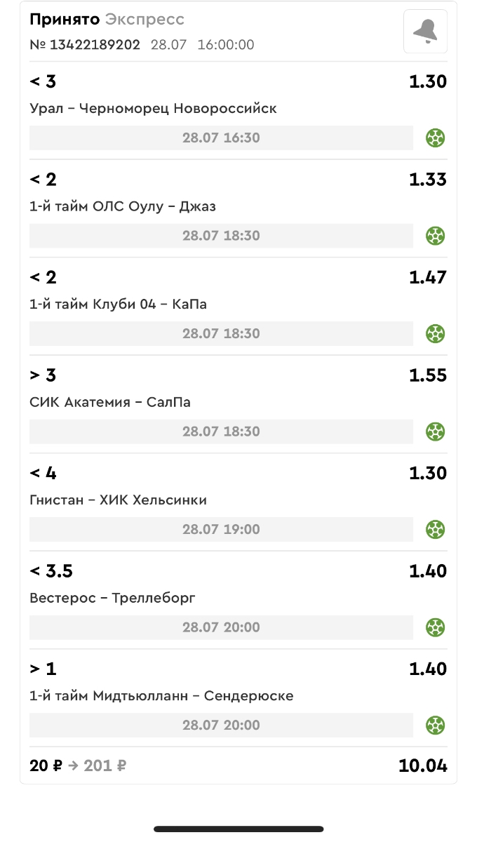 Koyaanisquatsi Hopi 98 Опубликовано 28 июля Автор Поделиться Опубликовано 28 июля Мини экспрессы недели С 21.07.25 по 27.07.25 все проиграли! Итого банк -60₽, -18%, 4100₽! Мини экспрессы недели на эту неделю ! С 28.07.25 по 03.08.25 Цитата Ссылка на комментарий https://brcbet.com/topic/429498-master-klass-po-razdevaniyu-bukmekera-tolko-fevral/page/23/#findComment-509426 Поделиться на другие сайты Поделиться