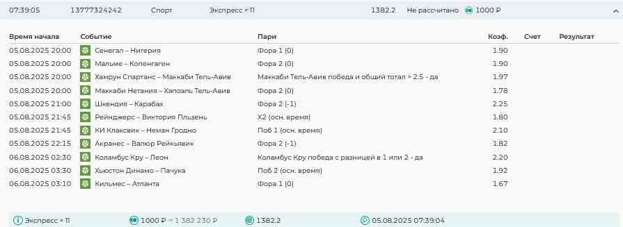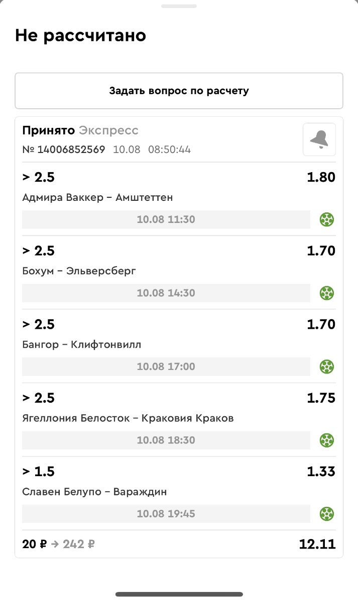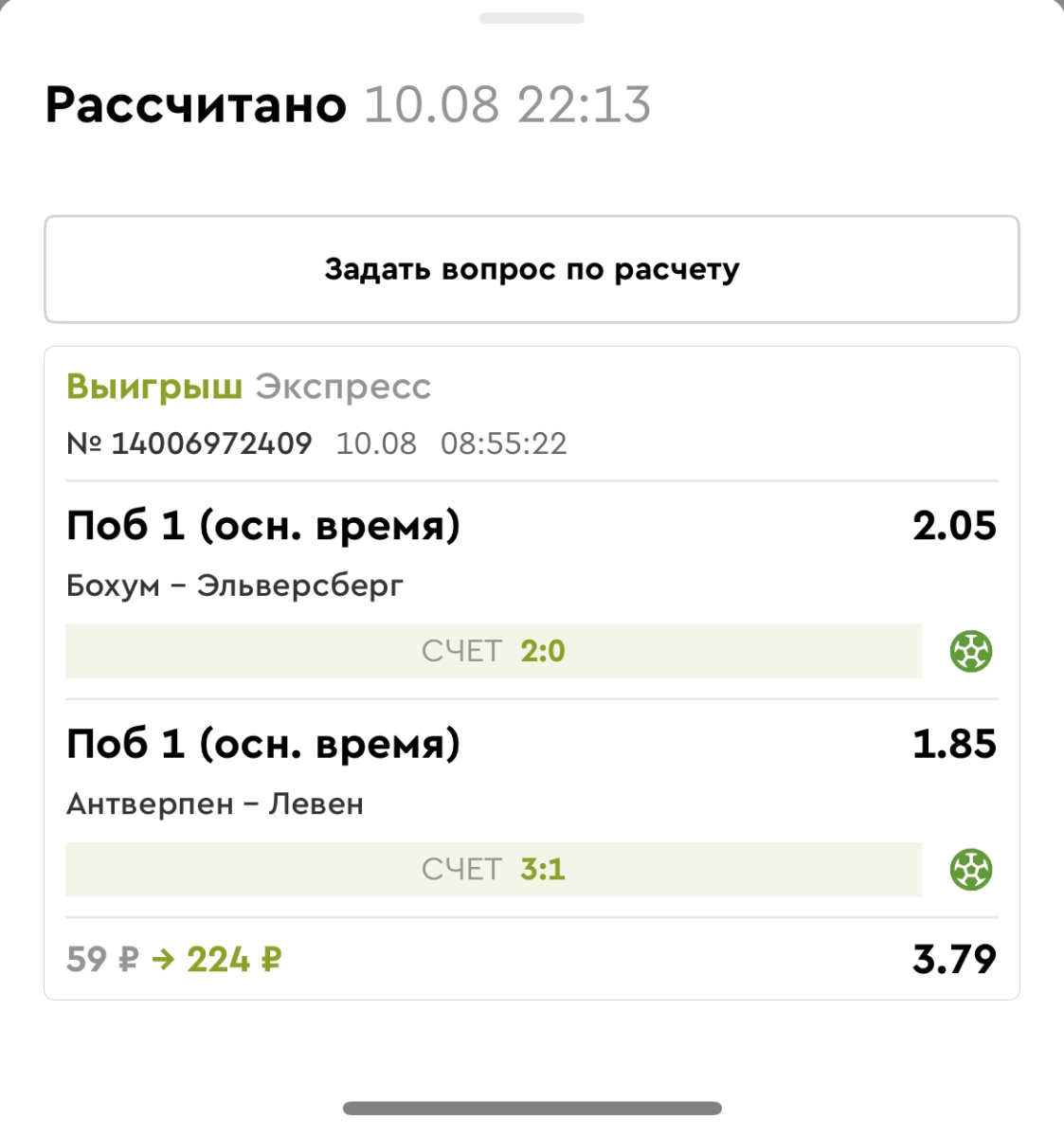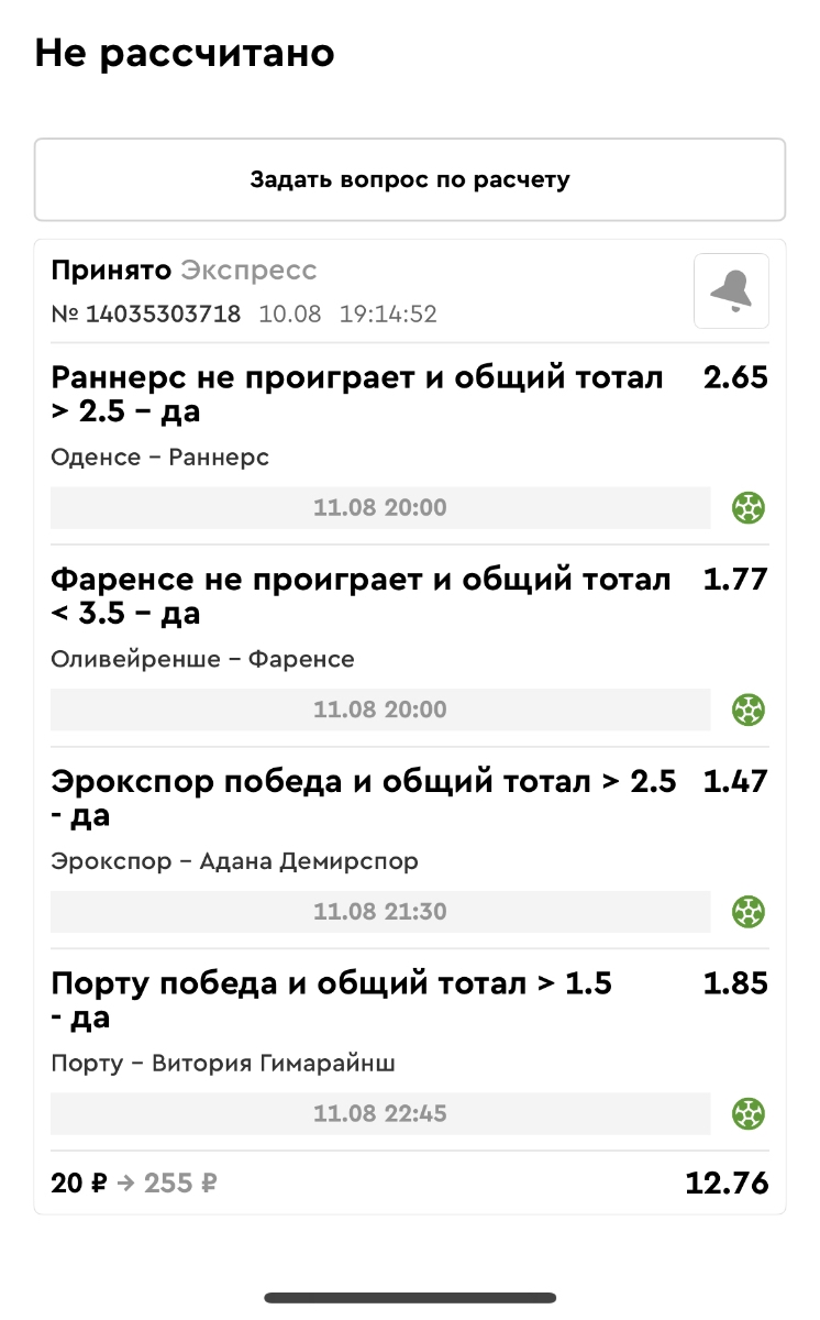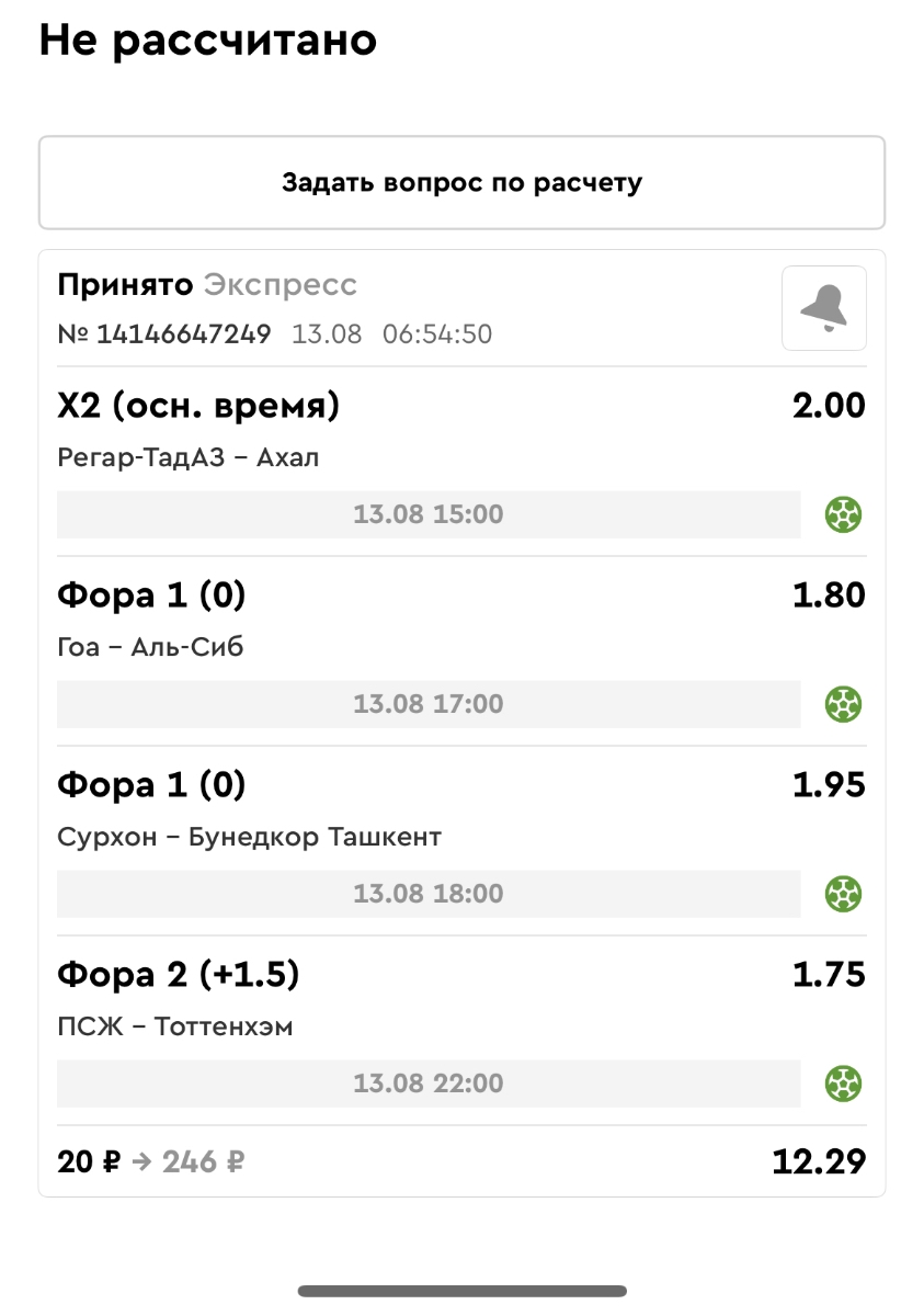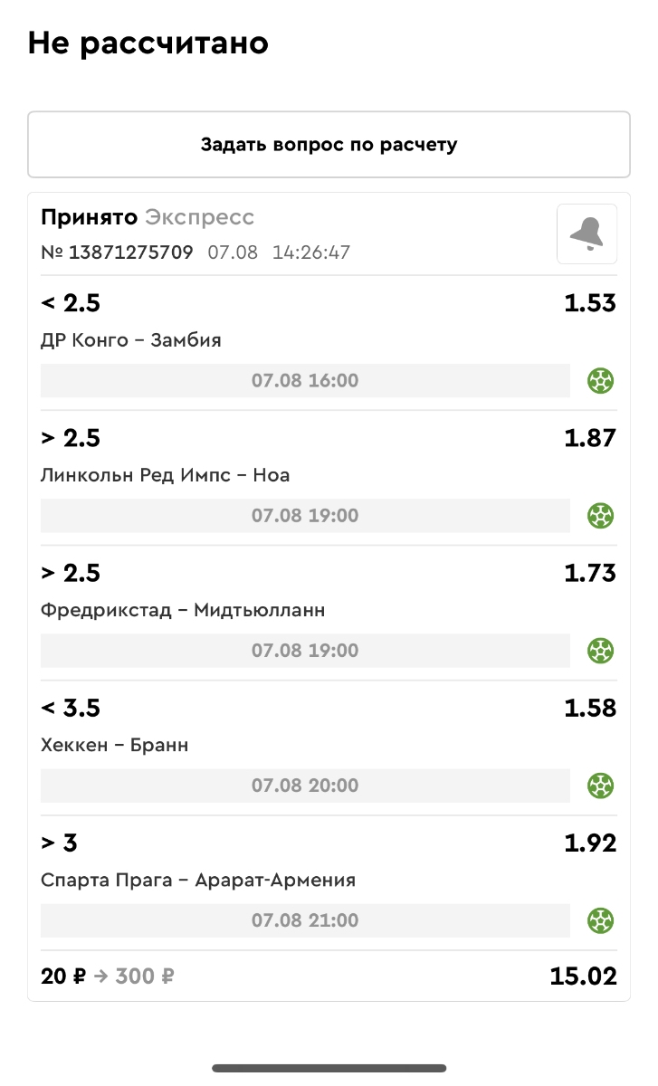 Ежедневные экспрессы за 07.08.25 все проиграли! Итого за день - 8 000р.  Итого за год по экспрессам - 867 500 ₽, за август - 58 000 р. Экспрессы на 08.08.25. Очень неплохо на самом деле идут дела,  если не смотреть на конечный результат пока что) последнюю неделю заходы значительно возросли и постоянно не хватает одного - двух события,  думаю в ближайшее время все придет.