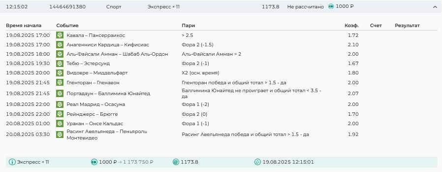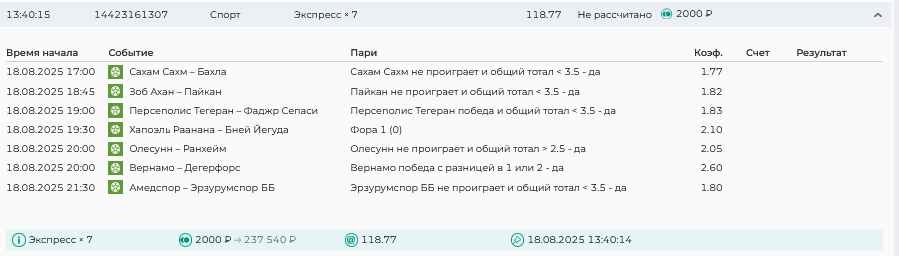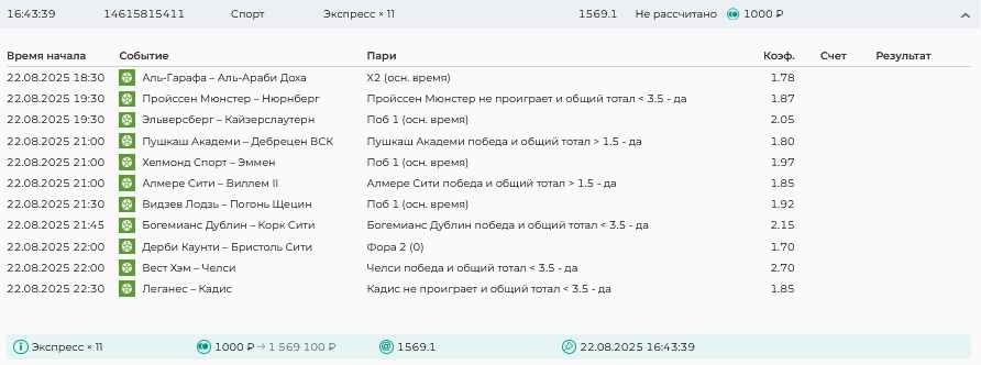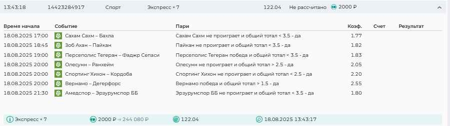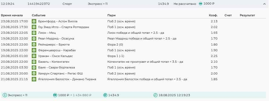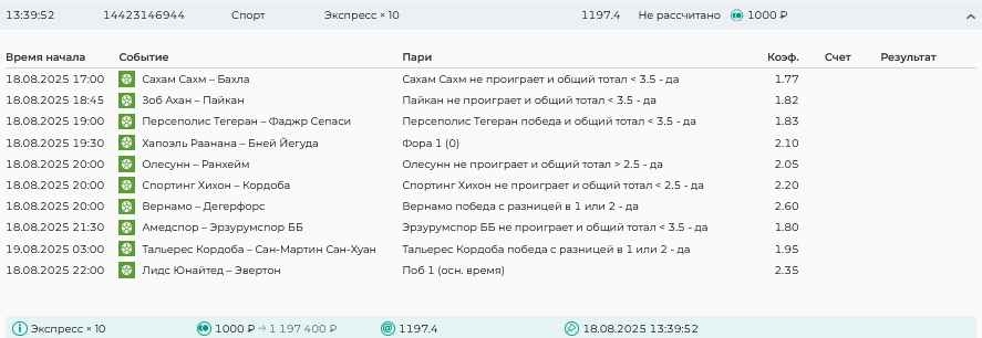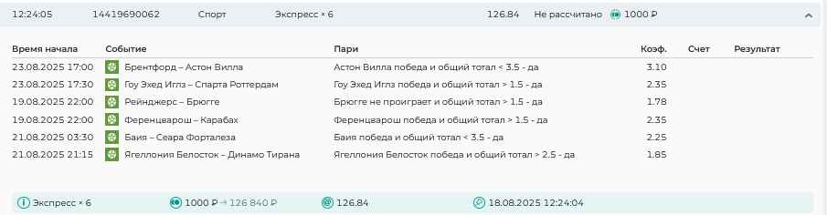 Koyaanisquatsi Hopi 98 Опубликовано 17 августа Автор Поделиться Опубликовано 17 августа Ежедневные экспрессы за 16.08.25 все проиграли! Итого за день - 9 000р. Экспрессы на 17.08.25. Итого за год по экспрессам - 951 500 ₽, за август - 142 000 р Цитата Ссылка на комментарий https://brcbet.com/topic/429498-master-klass-po-razdevaniyu-bukmekera-tolko-fevral/page/26/#findComment-510930 Поделиться на другие сайты Поделиться