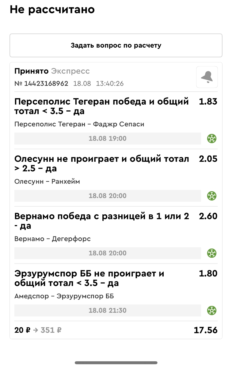 Koyaanisquatsi Hopi 98 Опубликовано 18 августа Автор Поделиться Опубликовано 18 августа Ежедневные экспрессы за 16.08.25 все проиграли! Итого за день - 9 000р. Экспрессы на 17.08.25. Итого за год по экспрессам - 951 500 ₽, за август - 142 000 р Цитата Ссылка на комментарий https://brcbet.com/topic/429498-master-klass-po-razdevaniyu-bukmekera-tolko-fevral/page/26/#findComment-511031 Поделиться на другие сайты Поделиться