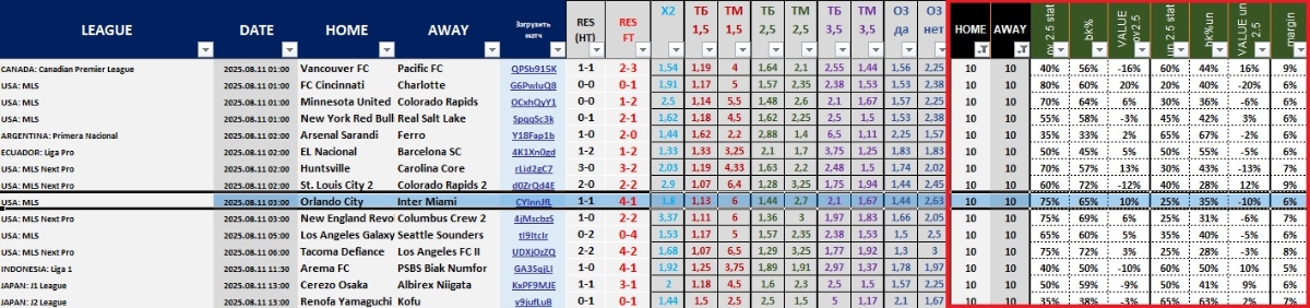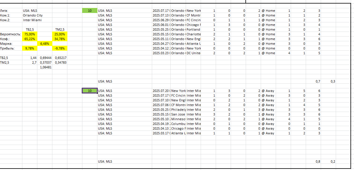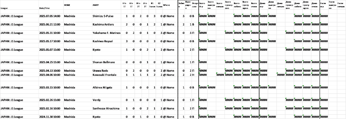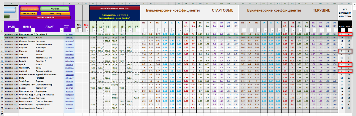 red_star 185 Опубликовано 11 августа Поделиться Опубликовано 11 августа 47 минут назад, The Iron Wizard сказал: Здесь есть один нюанс. Эти колонки не относятся к турнирной таблице. Они относятся к этому алгоритму. По умолчанию, алгоритм использует 15 матчей для домашней команды дома, а для гостевой в гостях. И если команды сыграли меньше 8 матчей, то формула выдает ошибку как сыгранно ноль матчей. Вот пример, я уменьшил до десяти. KALKULATOR_OZ_FIX_11.08.25.xlsb 980.66 kB · 0 загрузок То есть для Вас это просто показатель применимости данного алгоритма. Как я понимаю, четвертого? Тогда надо ли выводить его в таком виде? Может сделать одну колонку типа "Применимость алгоритма № Х" - ДА/НЕТ. 1 Цитата Ссылка на комментарий https://brcbet.com/topic/429568-masterskaya-sashiaktualnye-tablitsy-posle-sboev/page/10/#findComment-510442 Поделиться на другие сайты Поделиться