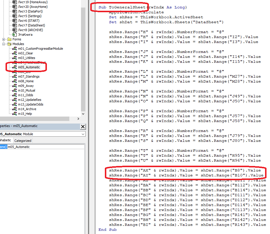 Jahongir Gayiberdiyev 8 Опубликовано 11 августа Поделиться Опубликовано 11 августа 3 часа назад, The Iron Wizard сказал: Спасибо. Просто я полдня настраивал таблицу под себя и переделывать что-то не хочется. То есть, можно просто скопировать код и заменить в модуле для домашней и гостевой команды? Sub getHome(ts1 As Long, tour1_name As String, home_id1 As String, away_id1 As String, country_id As String) On Error Resume Next 1 Цитата Ссылка на комментарий https://brcbet.com/topic/429568-masterskaya-sashiaktualnye-tablitsy-posle-sboev/page/10/#findComment-510374 Поделиться на другие сайты Поделиться