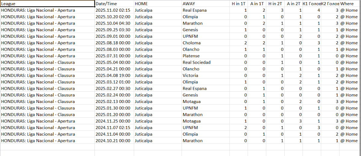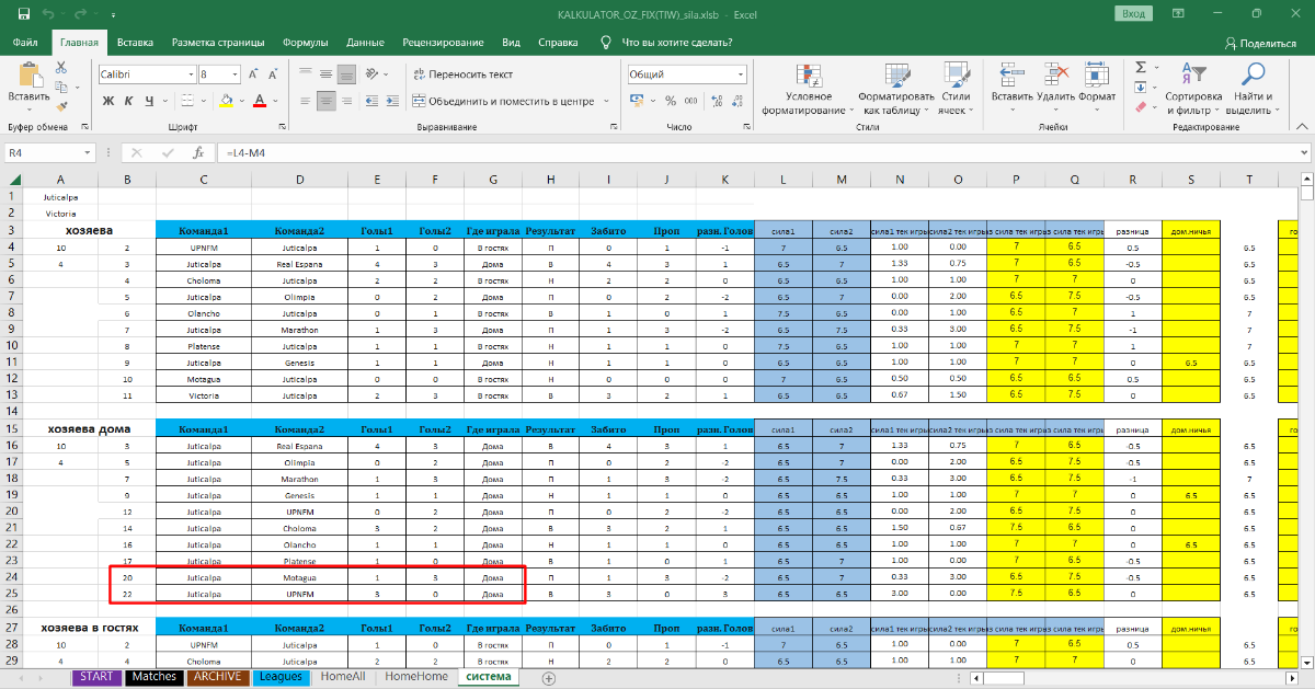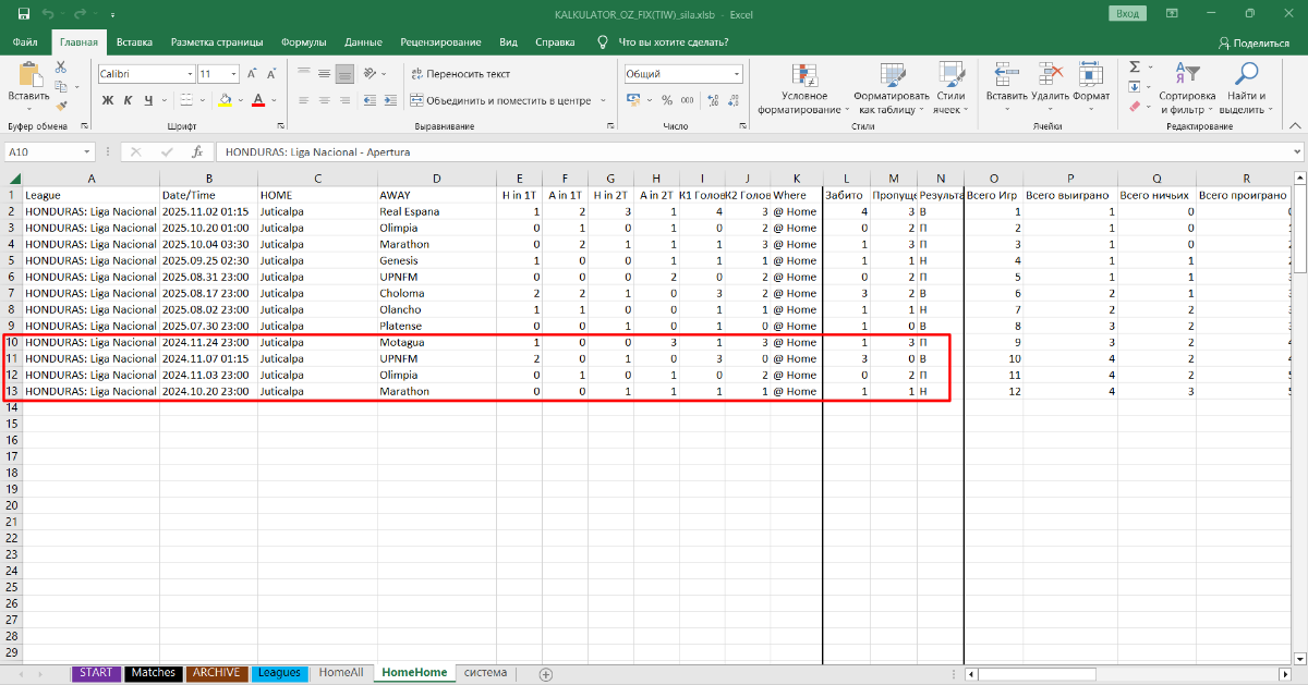 Постоянный Sweet Mask 671 Опубликовано 31 минута назад Постоянный Поделиться Опубликовано 31 минута назад (изменено) 14 часов назад, The Iron Wizard сказал: Всем привет. Если кто желает протестировать алгоритм Farella по силам, милости просим. KALKULATOR_OZ_FIX(TIW)_sila.xlsb 1.42 MB · 31 загрузка Просьба пересмотреть крректность загрузки забитых и пропущенных матчей во вкладках, поскольку в вашей версии пропускает часть матчей и загружает устаревшие или это единичный случай, не проверял. А некоторые данные могут попадать в расчеты сил и искажать их. Вот к примеру матч из вашей таблицы Вот история матчей с моего парсера Заметил, что это касается в основном вкладок HomeHome AwayAway начиная с 9 матча по убыванию. Изменено 28 минут назад пользователем Sweet Mask Цитата Ссылка на комментарий https://brcbet.com/topic/429568-masterskaya-sashiaktualnye-tablitsy-posle-sboev/page/24/#findComment-517695 Поделиться на другие сайты Поделиться