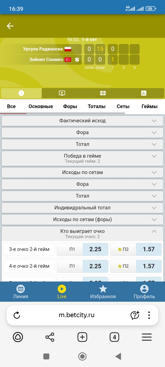 То есть: ставка делается на то, что фаворит выиграет третье очко в гейме, независимо от того, что было во втором.